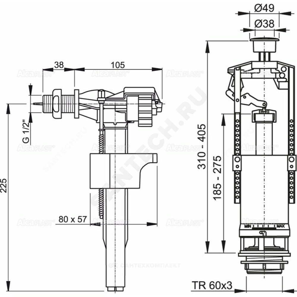 Впускной механизм A15-1/2" Сливной механизм A2000 Комплект прокладок Монтажный комплект: винт М8х65 – 2 шт. Заглушка хром