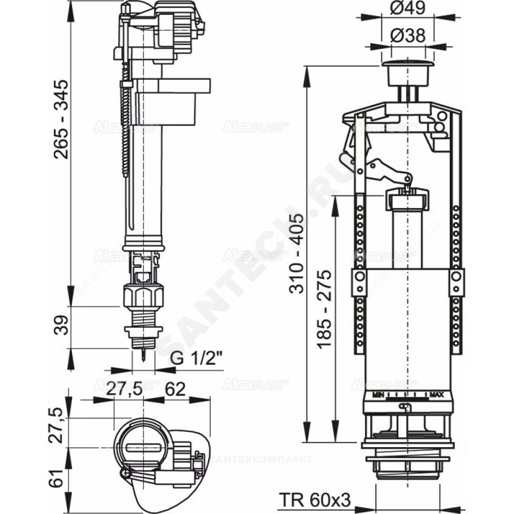 Впускной механизм A17-1/2" Сливной механизм A2000 Комплект прокладок Монтажный комплект: винт М8х65 – 2 шт.