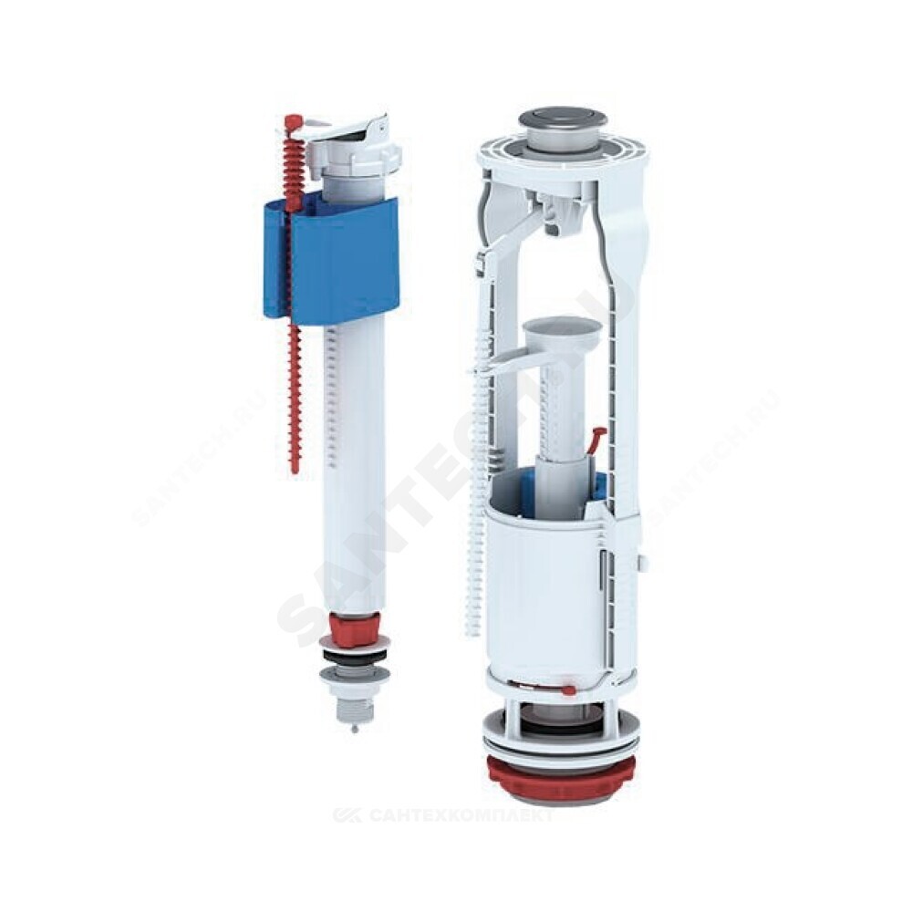 наполнительный клапан; спускной клапан; кнопочный комплект паспорт с инструкцией по монтажу и эксплуатации