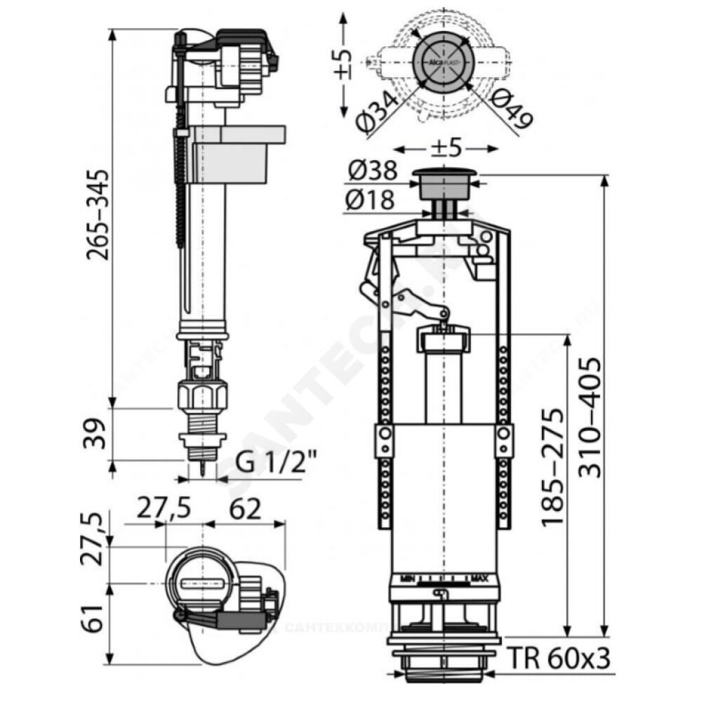 Впускной механизм A18-1/2" Сливной механизм A2000 Комплект прокладок Монтажный комплект: винт М8х65 – 2 шт.