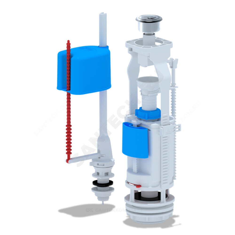 Наливной механизм с нижней подводкой и пластиковой резьбой диаметром 1/2, Сливной механизм хромированная кнопка с двойным режимом слива эконом