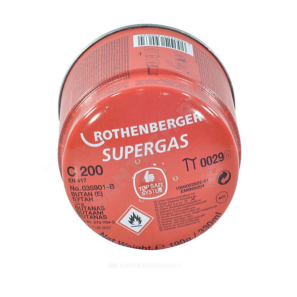 Баллон пропан-бутан SuperGaz C200 190гр Rothenberger 35901-В