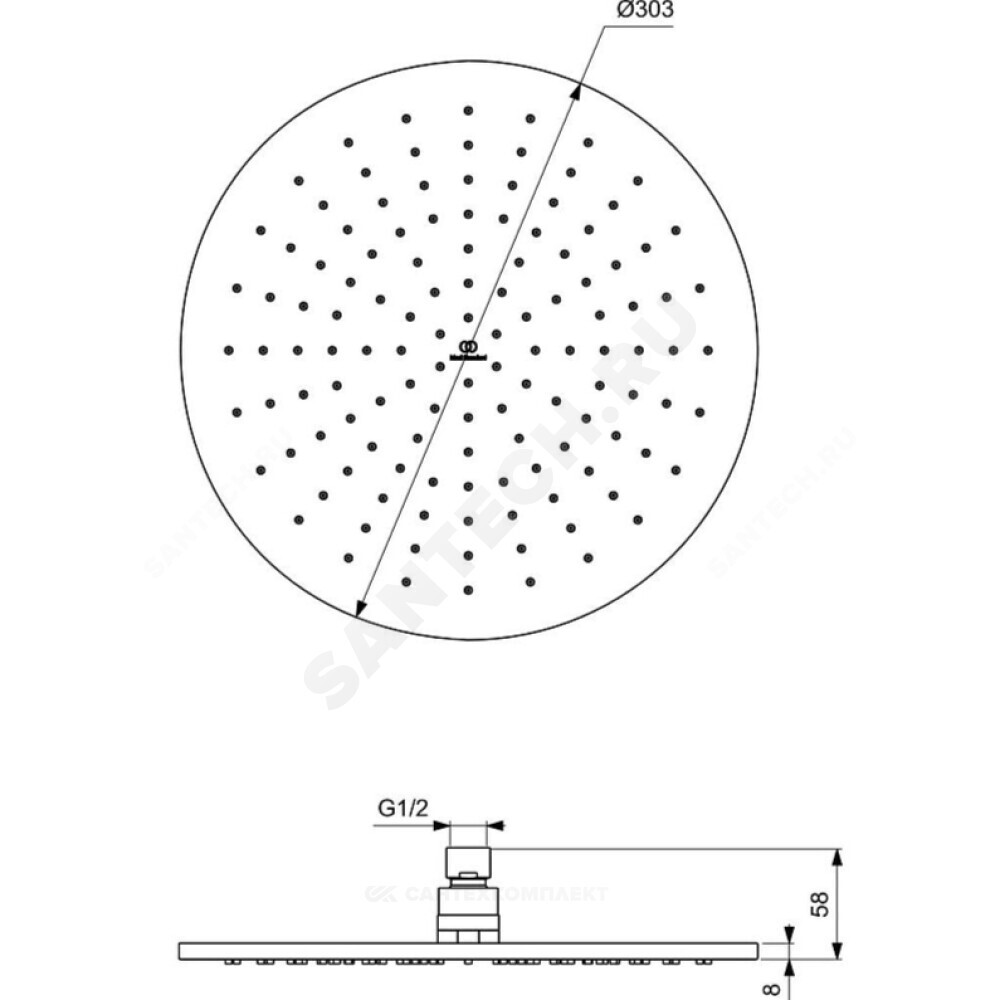 IDEALRAIN Круглый верхний душ 300 мм легкоочищаемый (силиконовые форсунки “Easy clean“) с ограничителем потока 12 л/мин