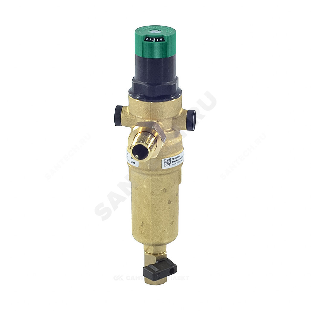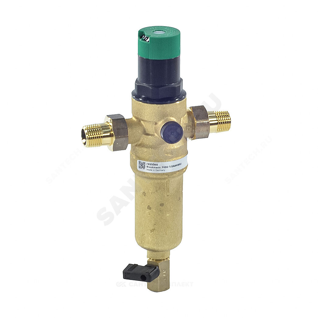 Промываемые фильтры тонкой очистки совмещенные с регулятором давления не только препятствуют проникновению инородных тел, в частности частиц ржавчины, волокон пеньки или песчинок, но и одновременно снижают давление воды после себя. Благодаря чему уменьшается уровень шума, когда статическое давление превышает 5 bar и расход воды.