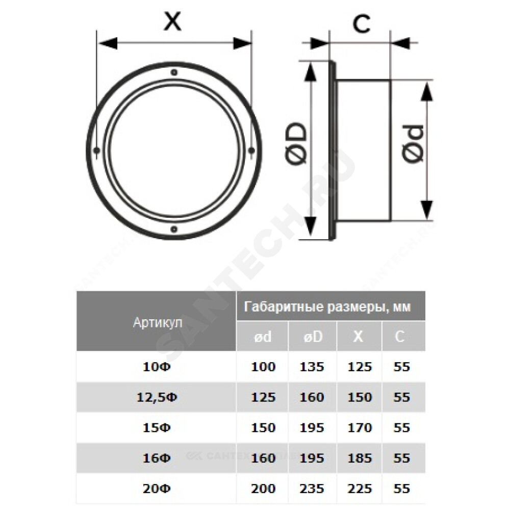 Диаметр или поперечное сечение воздуховода (вентилятора)