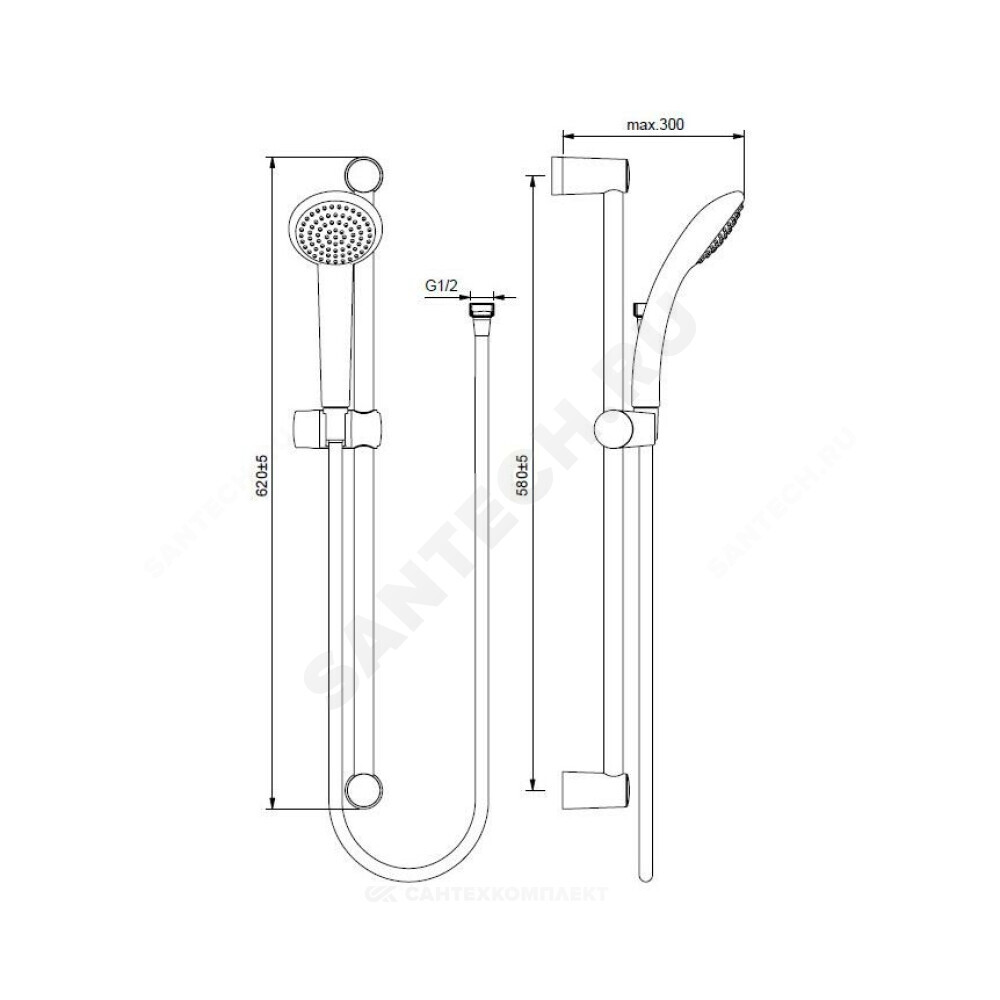 лейка для душа - 1 шт., шланг для душа L=1750мм с силиконовым покрытием ULTRAFLEX - 1 шт., штанга для душа L=600мм с поворотным держателем - 1 шт., крепление для штанги настенное - 2 шт.)
