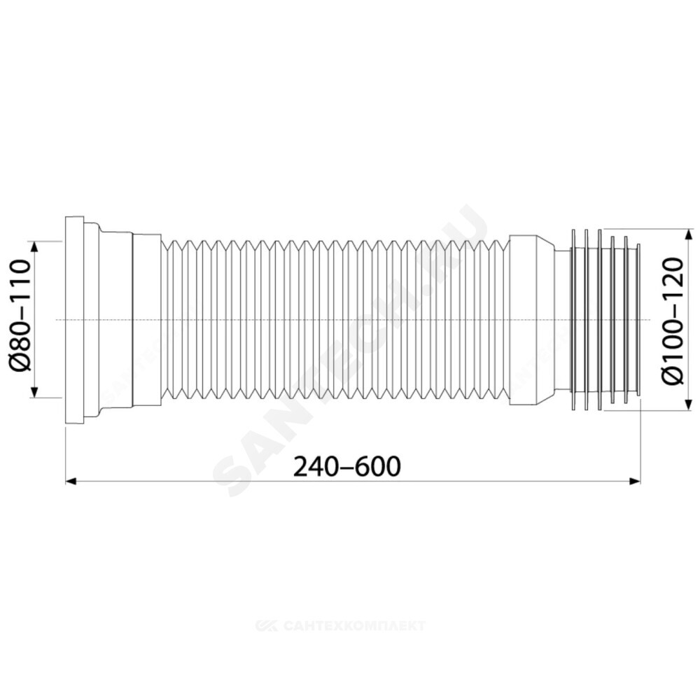 Гофра для унитаза 110мм L=240-600мм для чугунных и пластиковых труб Alca Plast A97