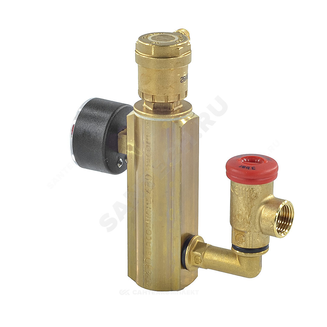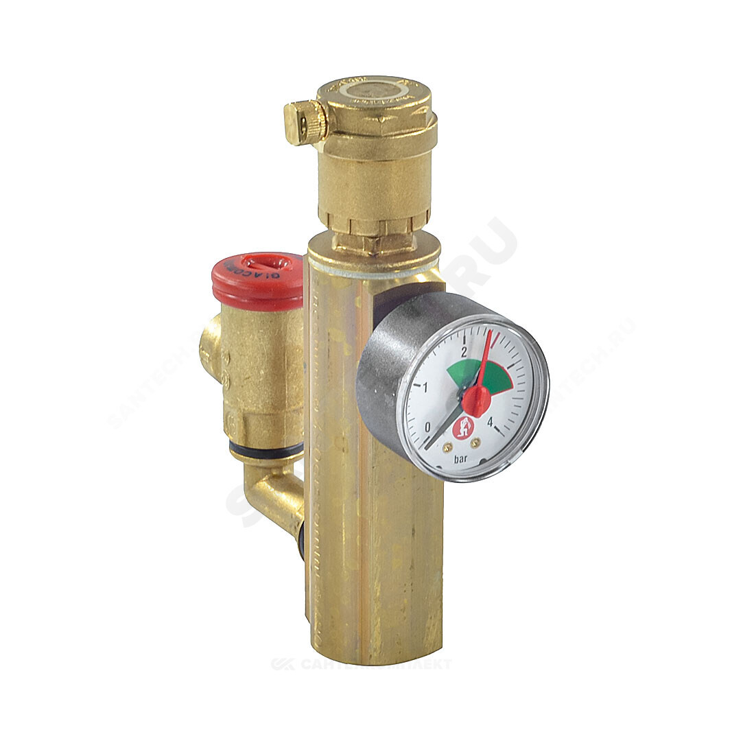 Коллектор Воздухоотводчик R88I Предохранительный клапан 3 бара, R140R Манометр 0÷4 бара, R225D