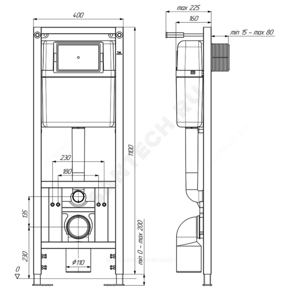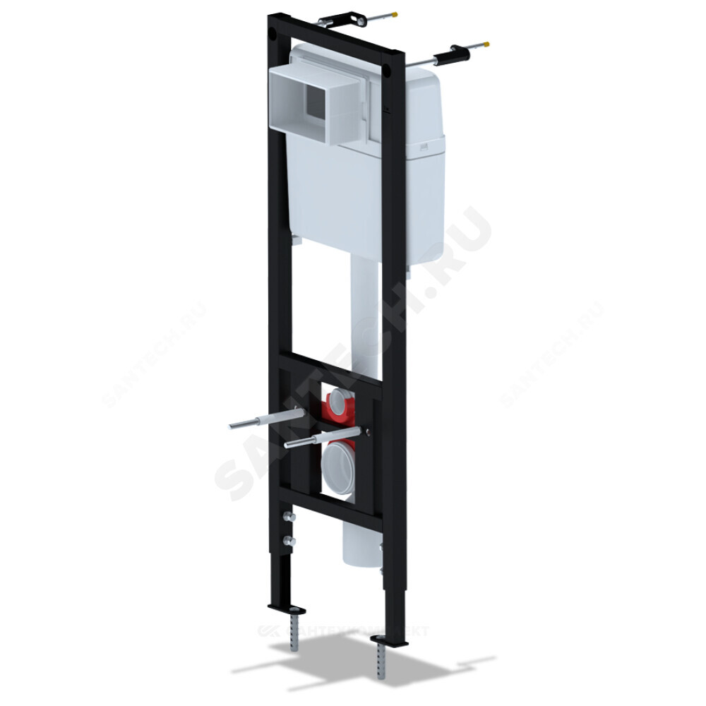 металлическая рама с нижними и верхними крепёжными элементами; комплект крепления инсталляции; заглушка для трубы 50 мм; заглушка для трубы 110 мм; картонный короб паспорт с инструкцией по монтажу и эксплуатации.