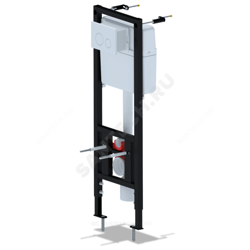 металлическая рама с нижними и верхними крепёжными элементами; комплект крепления инсталляции; заглушка для трубы 50 мм; заглушка для трубы 110 мм;кнопка смыва; картонный короб паспорт с инструкцией по монтажу и эксплуатации.