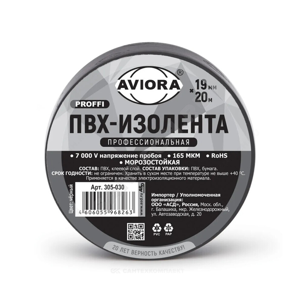 Изолента профессиональная на основе ПВХ 19ммх20м черная AVIORA 305-030