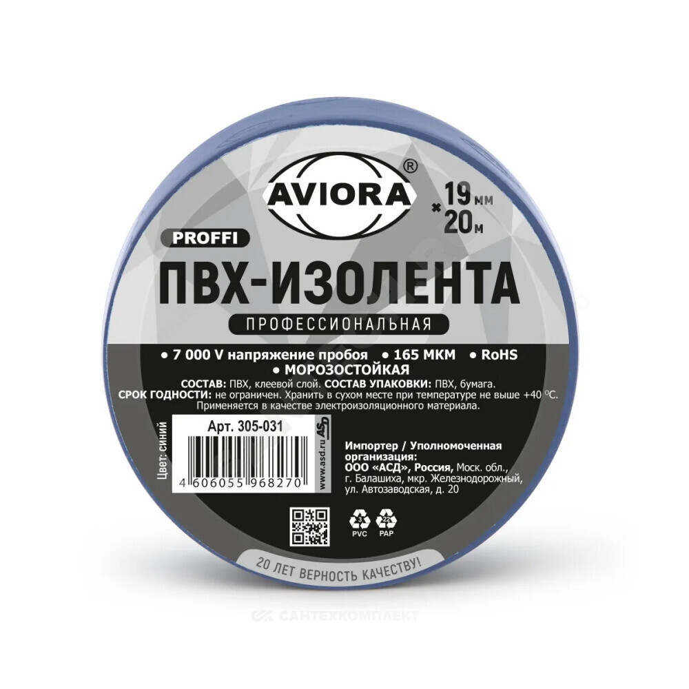 Изолента профессиональная на основе ПВХ 19ммх20м синяя AVIORA 305-031
