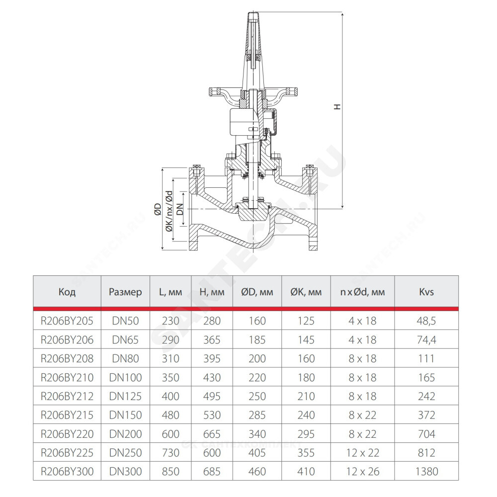 Kvs=242м3/ч