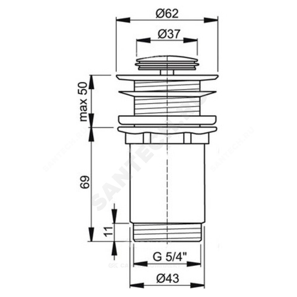 сливной клапан с системой закрытия "клик-клак", хром