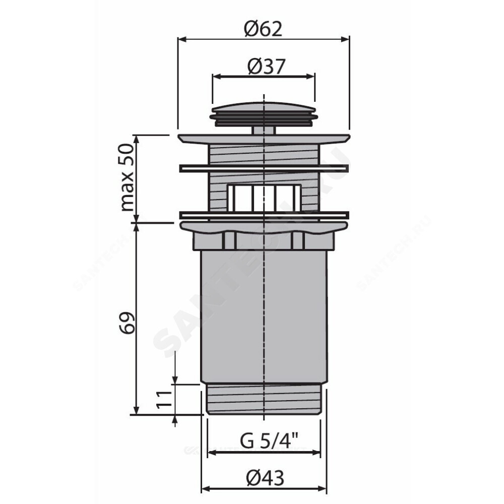 сливной клапан с системой закрытия "клик-клак", хром