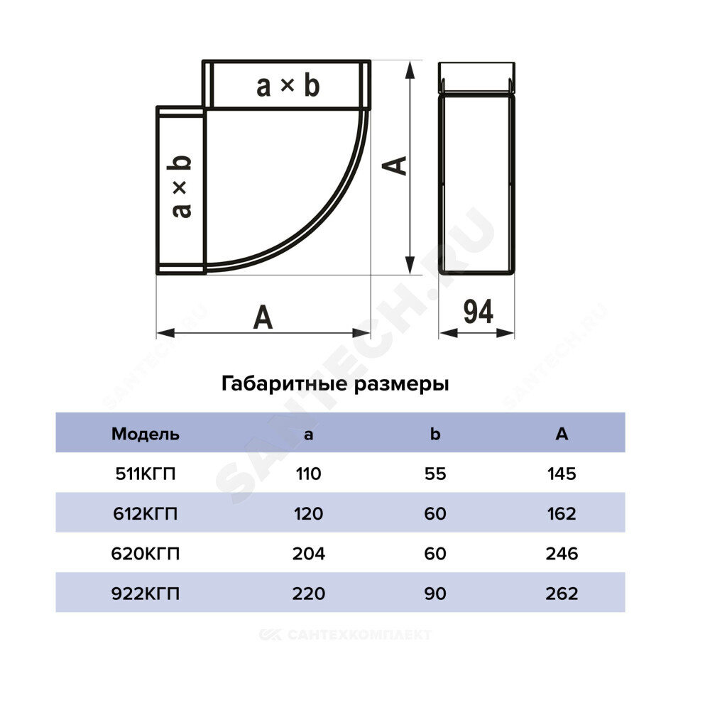 Колено прямоугольное 90гр 60х120 горизонтальное пластик Эра 612КГП