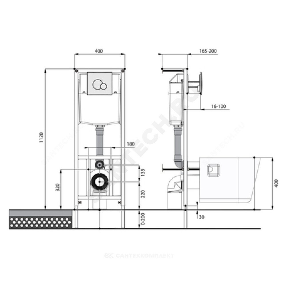 Унитаз подвесной Нео, система инсталляции, кнопка смыва, сиденье дюропласт