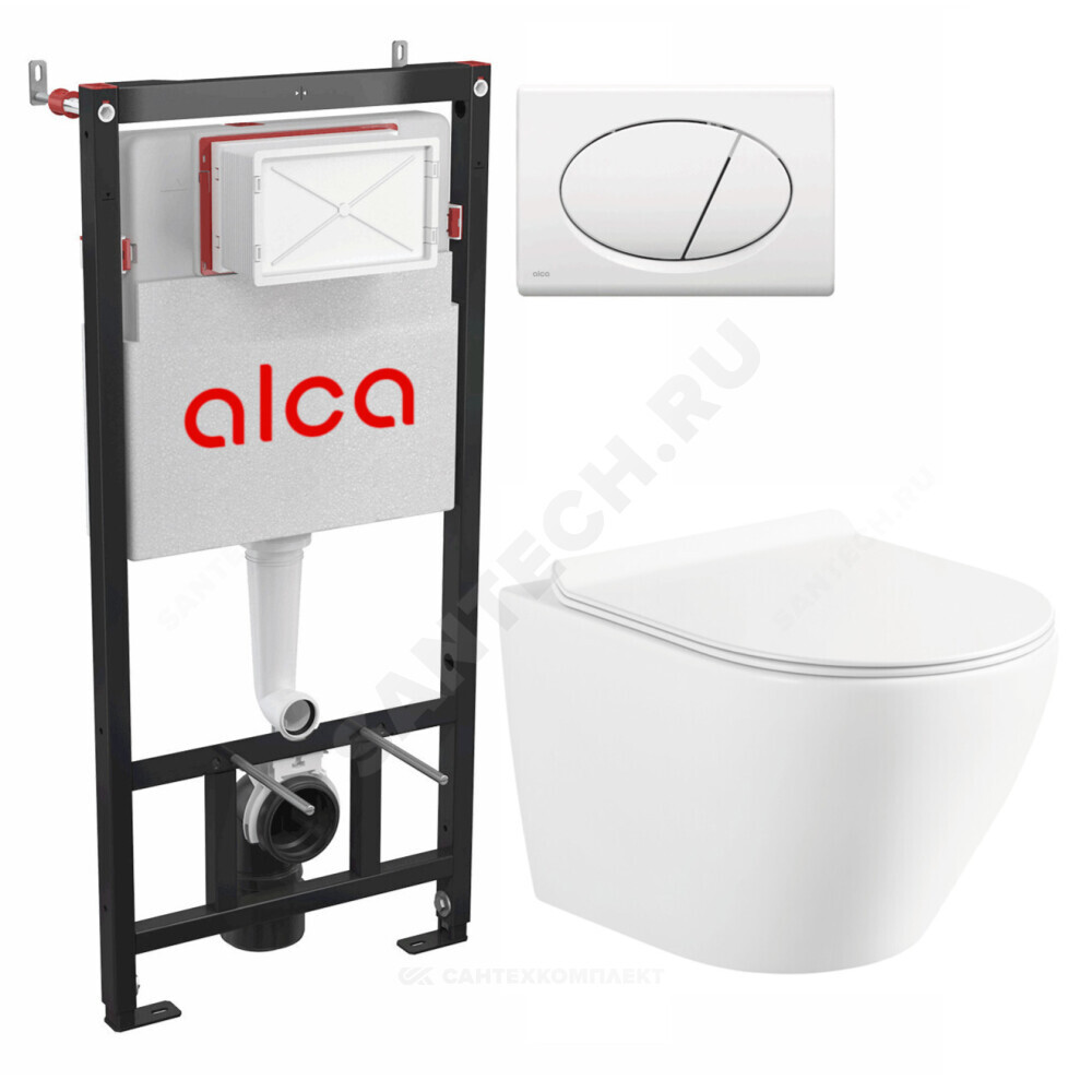 инсталляция + кнопка смыва белая + унитаз подвесной