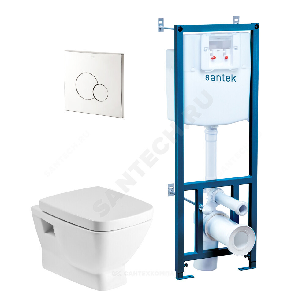 чаша унитаза подвесного Нео 1.WH30.2.430, Сиденье Нео с функцией мягкого закрывания и быстрого снятия 1.WH30.2.479, Инсталляция для унитаза Бореаль/Нео 1.WH30.2.465, панель смыва хром глянец