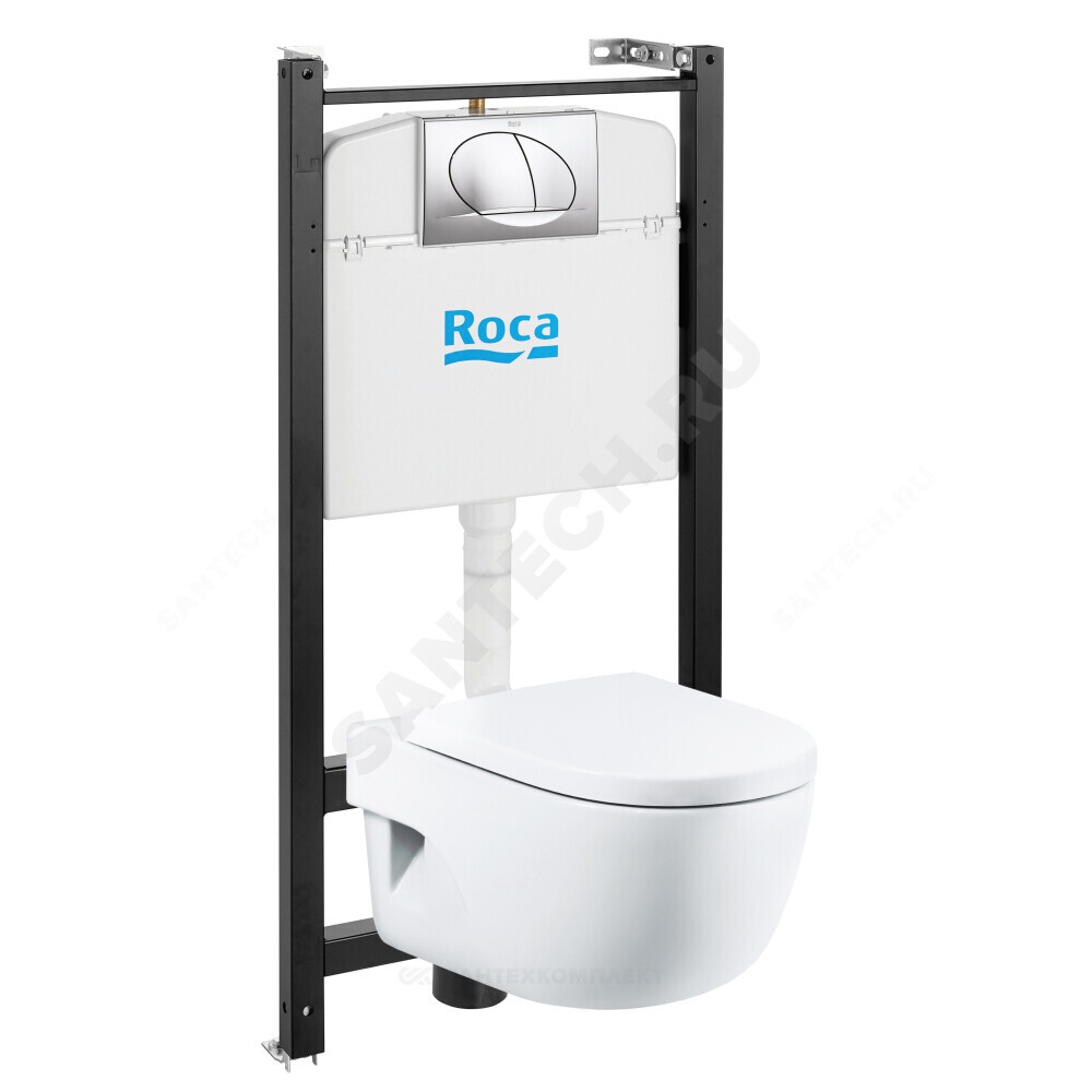 Инсталляционная система Roca Active, Meridian подвесной унитаз, сиденье с функцией мягкого закрывания, клавиша смыва