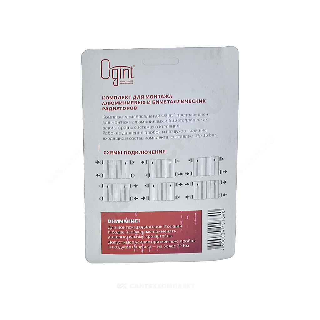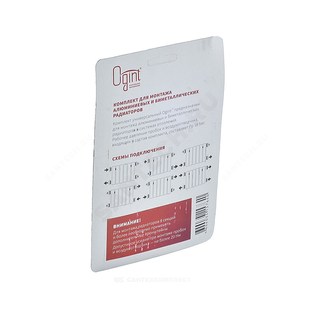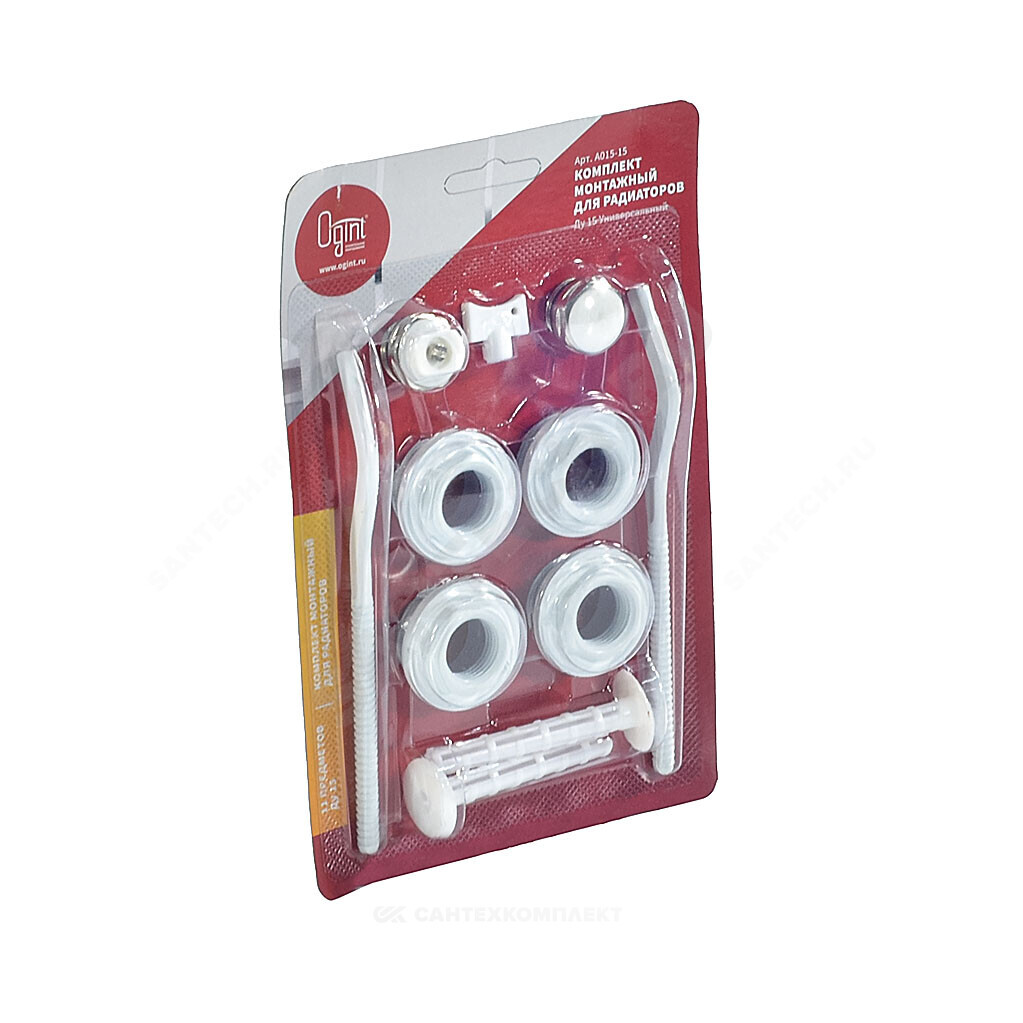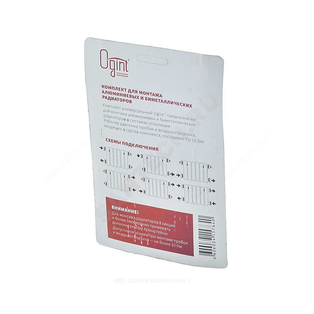 Комплект в сборе (пробка проходная 1"x1/2" левая - 2 шт., пробка проходная 1"x1/2" правая - 2 шт., заглушка 1/2" - 1 шт., кран Маевского 1/2" - 1 шт., ключ для крана Маевского - 1 шт., кронштейн настенный штыревой плоский - 2 шт., дюбель - 2 шт.)