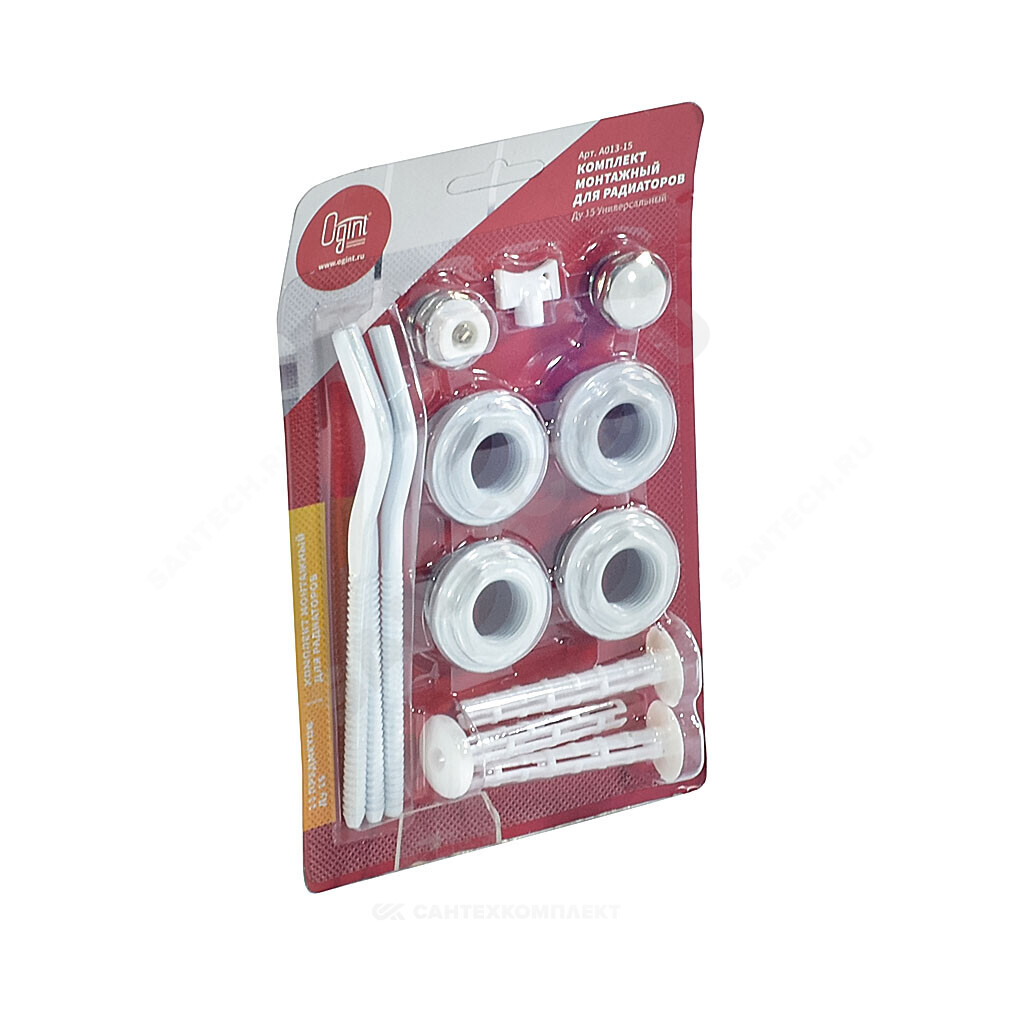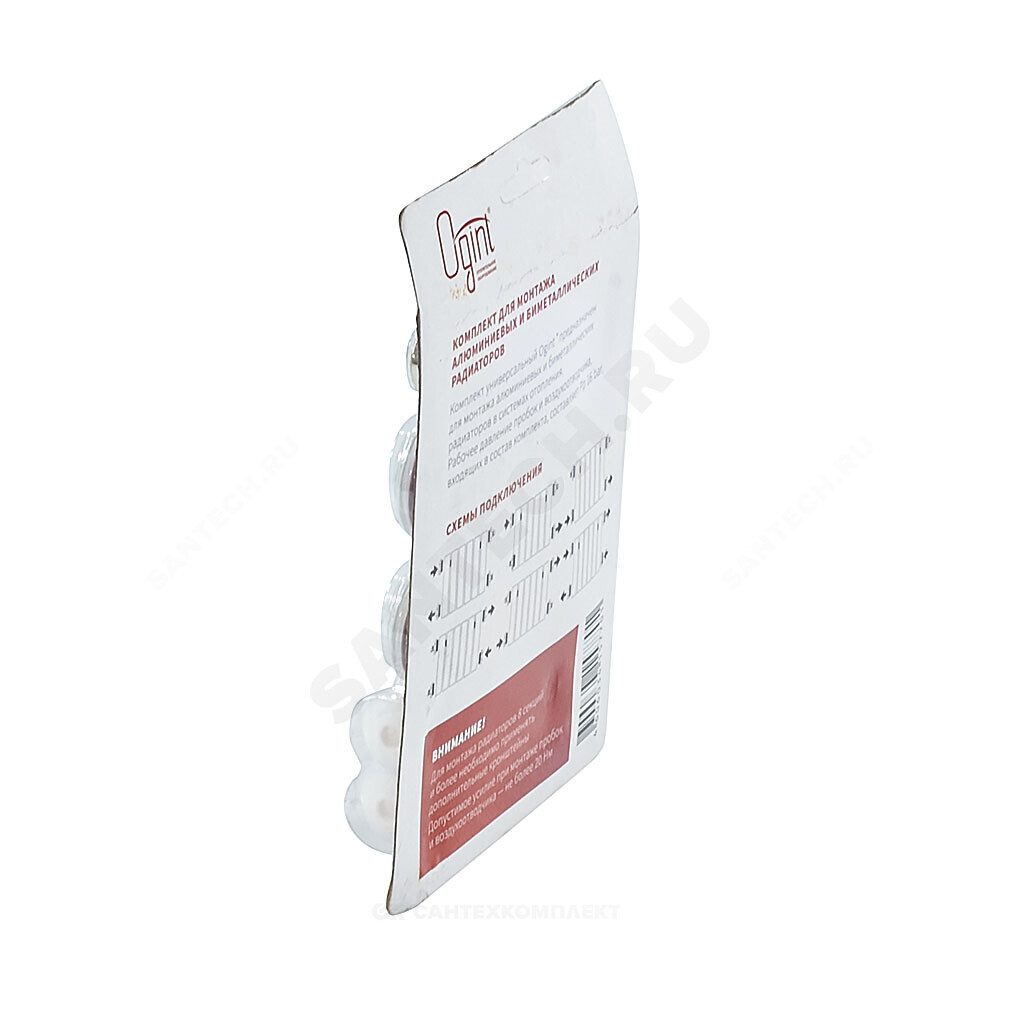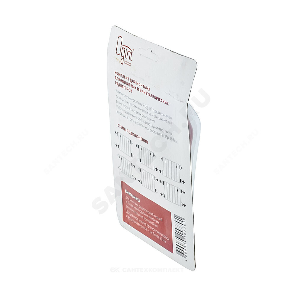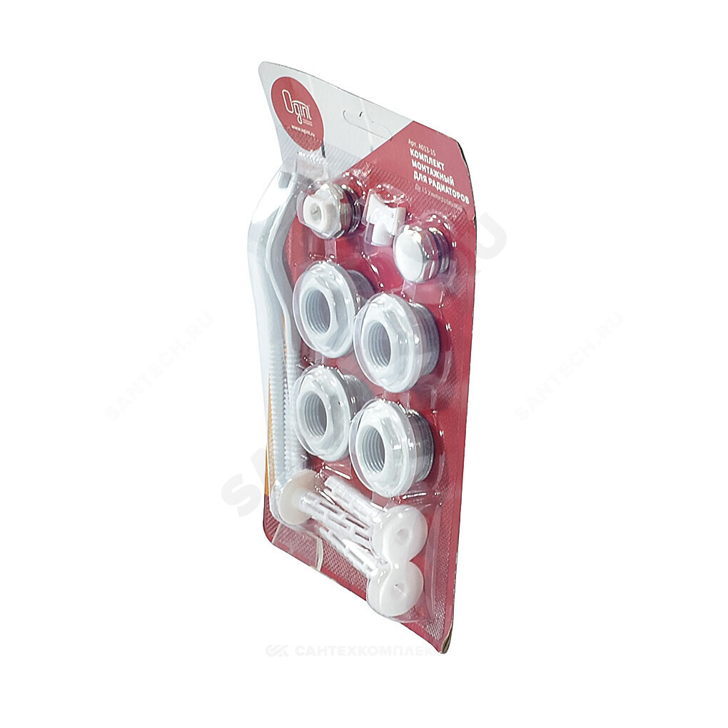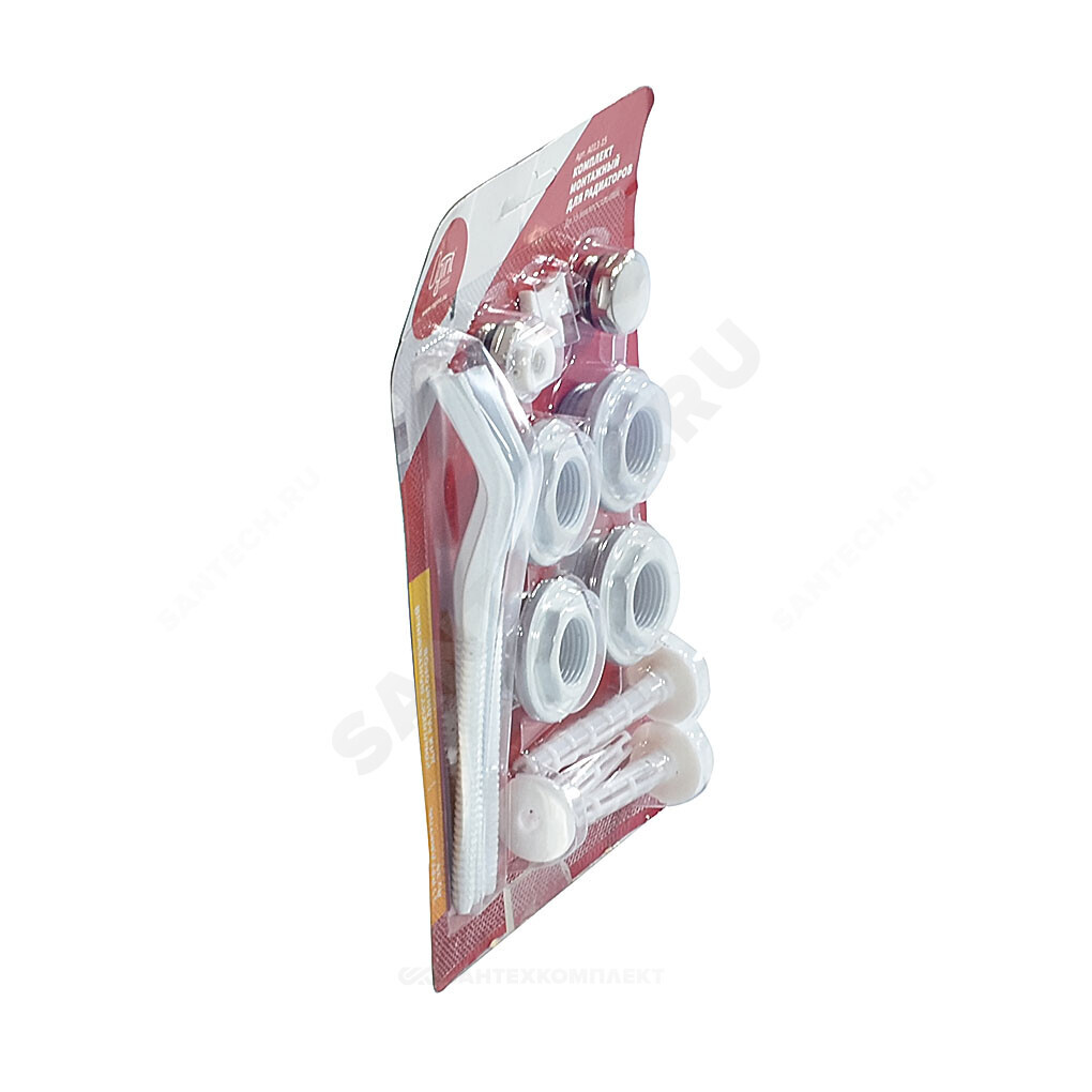 Комплект в сборе (пробка проходная 1"x1/2" левая - 2 шт., пробка проходная 1"x1/2" правая - 2 шт., заглушка 1/2" - 1 шт., кран Маевского 1/2" - 1 шт., ключ для крана Маевского - 1 шт., кронштейн настенный штыревой плоский - 3 шт., дюбель - 3 шт.)