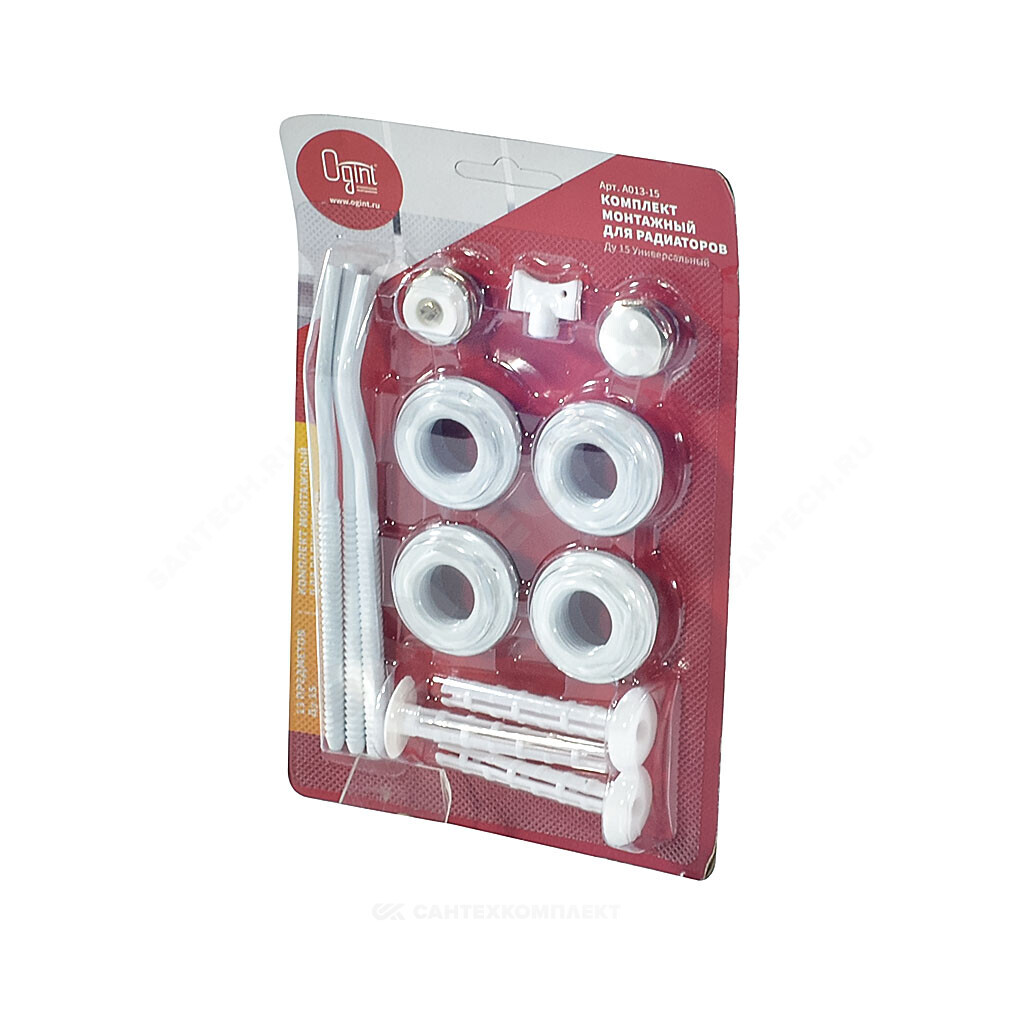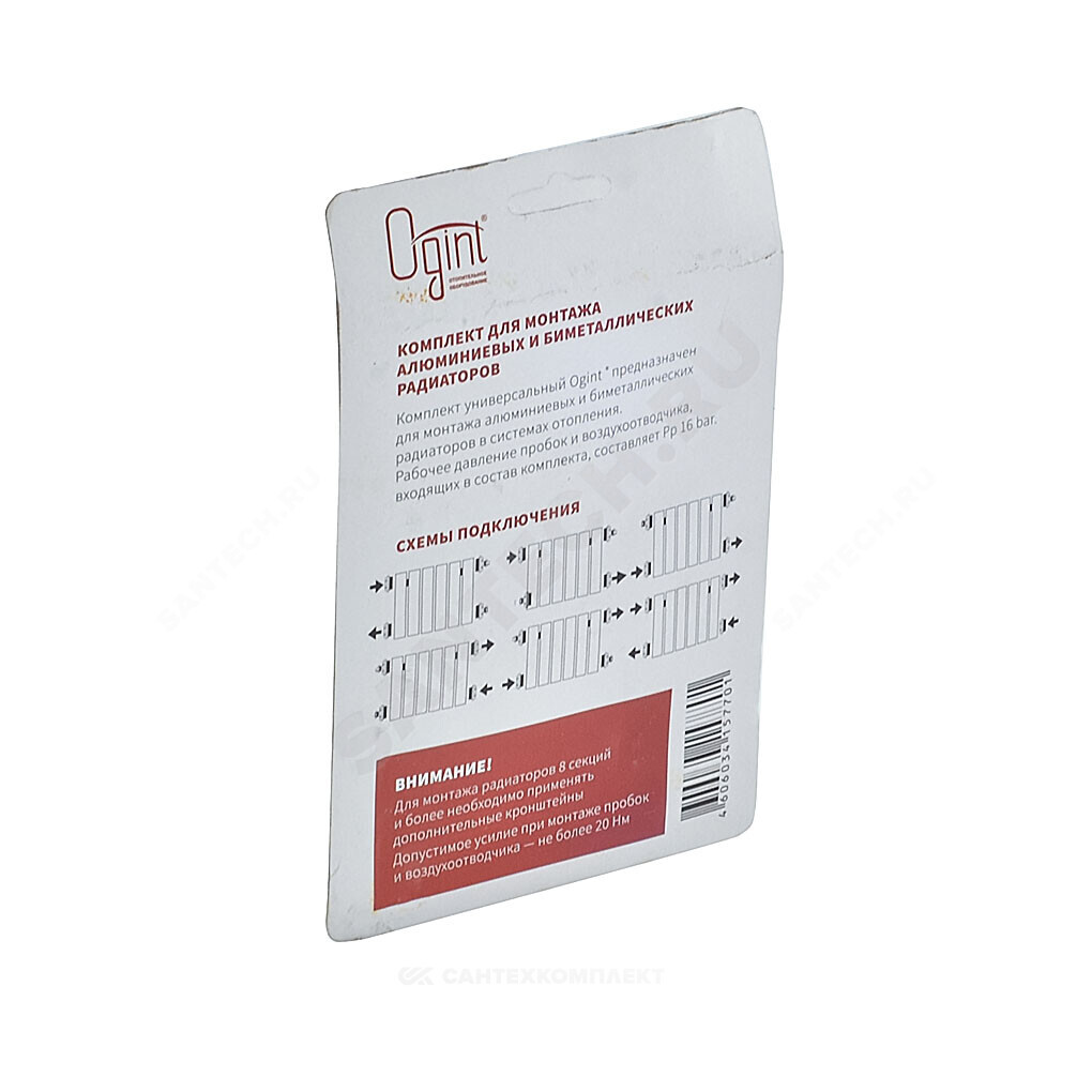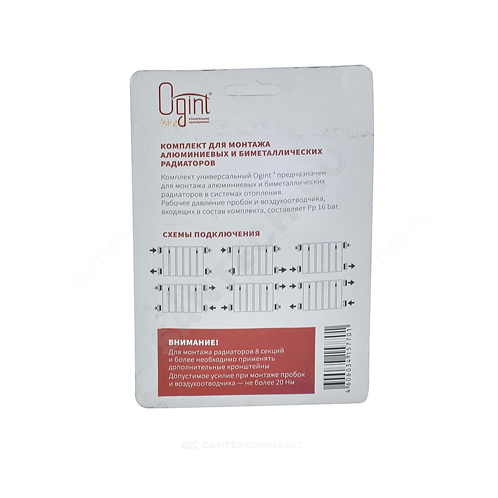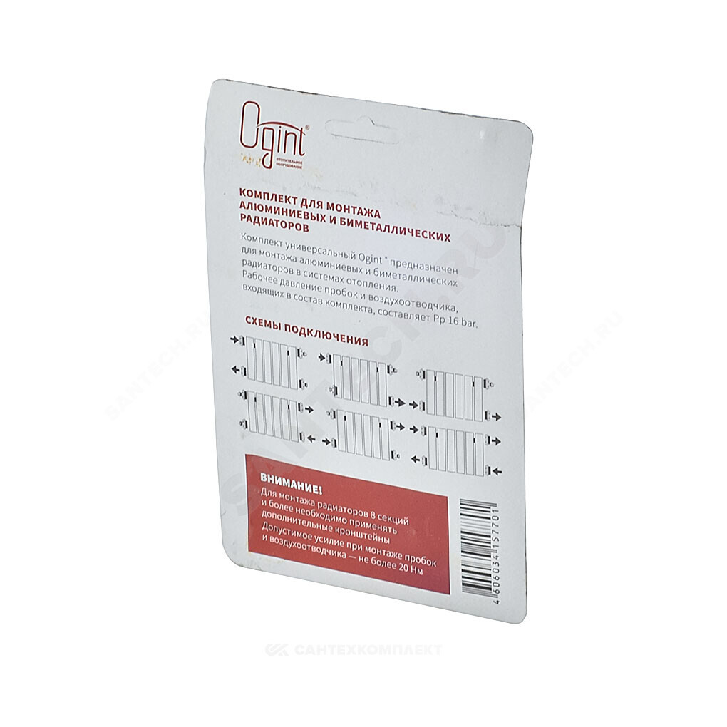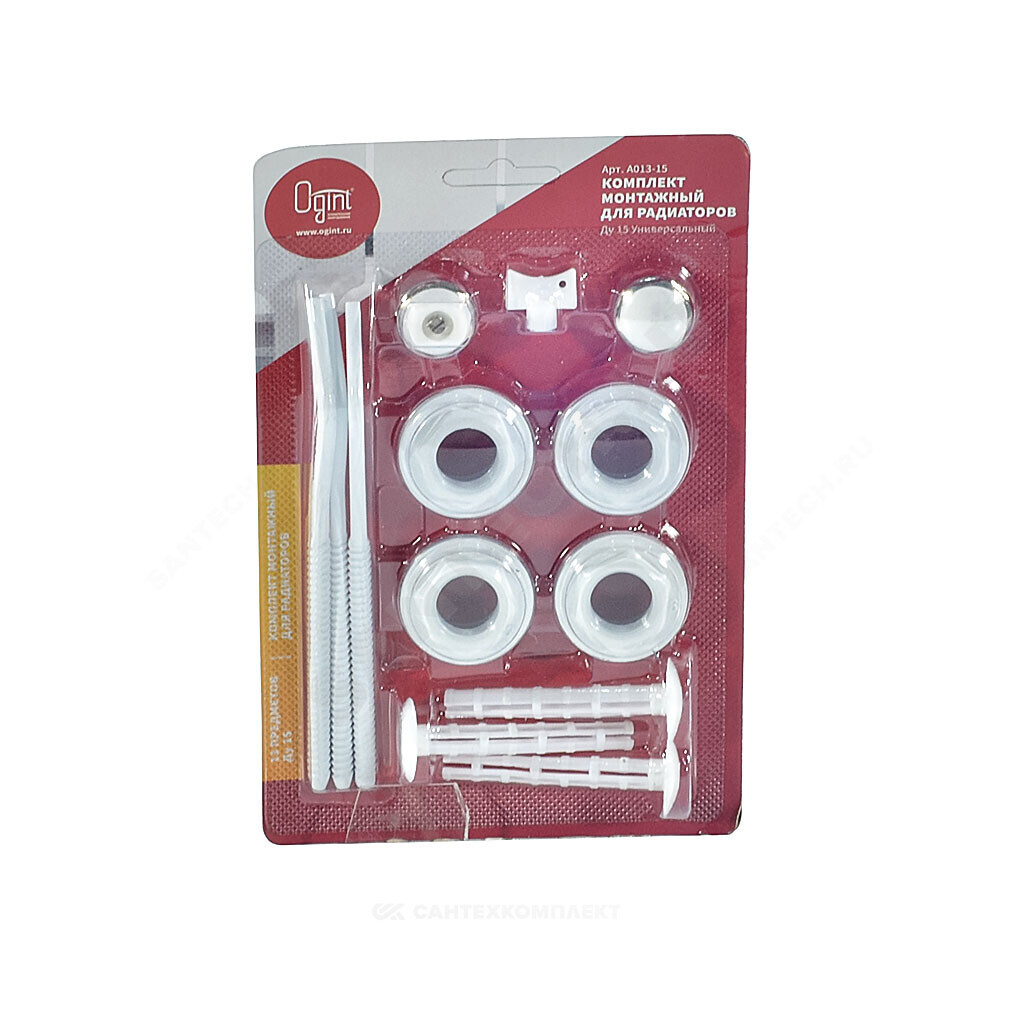 Комплект в сборе (пробка проходная 1"x1/2" левая - 2 шт., пробка проходная 1"x1/2" правая - 2 шт., заглушка 1/2" - 1 шт., кран Маевского 1/2" - 1 шт., ключ для крана Маевского - 1 шт., кронштейн настенный штыревой плоский - 3 шт., дюбель - 3 шт.)
