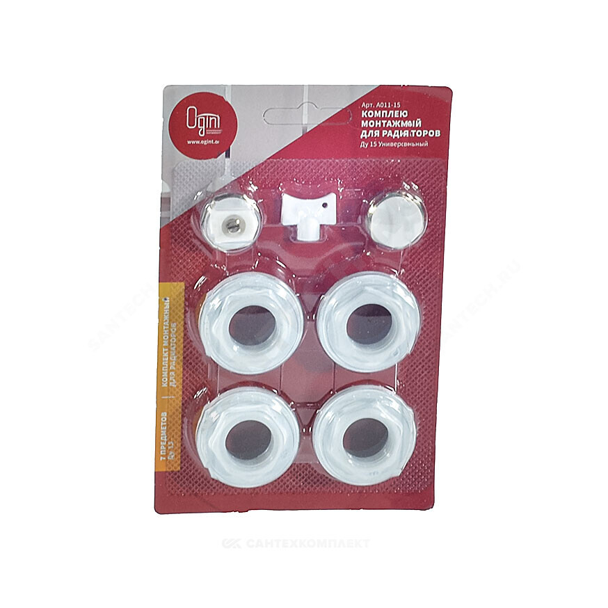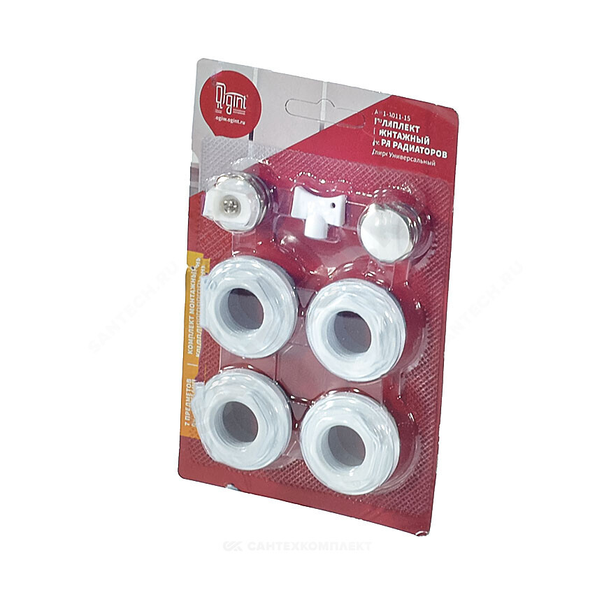 Комплект в сборе (пробка проходная 1"x3/4" левая - 2 шт., пробка проходная 1"x3/4" правая - 2 шт., заглушка 3/4" - 1 шт., кран Маевского 3/4" - 1 шт., ключ для крана Маевского - 1 шт.)