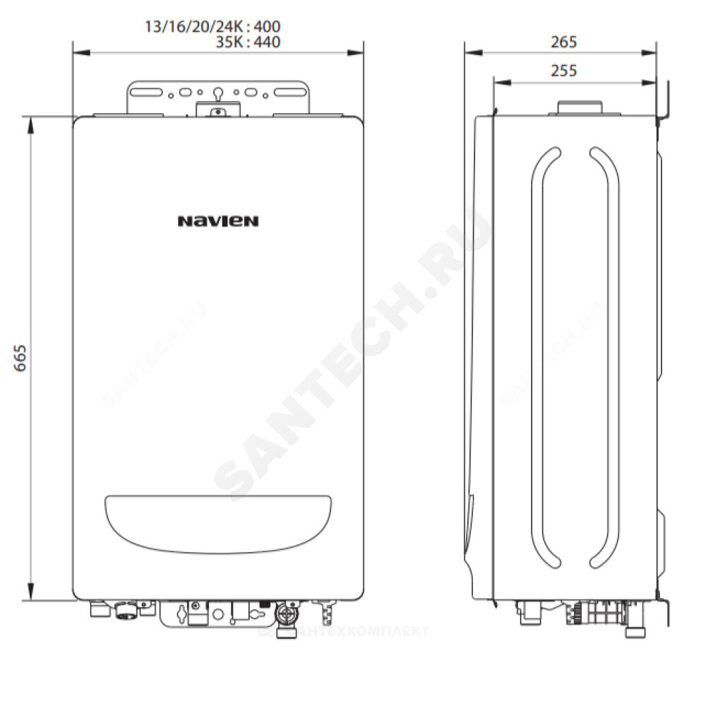 Котел, паспорт, пульт управления с монтажным комплектом, монтажная планка для установки котла
