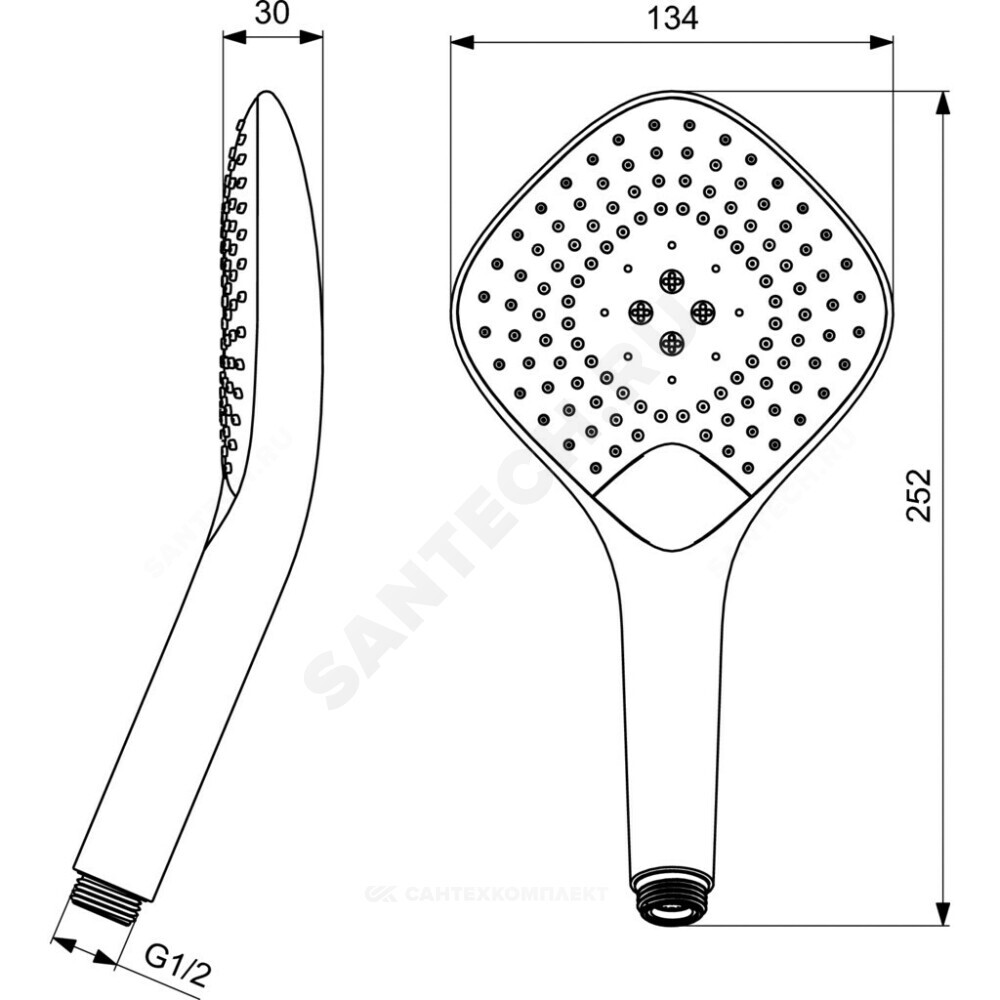 IDEALRAIN EVO JET DIAMOND XL3 Душевая лейка 125 мм 3-функциональная самоочищающаяся режим струи: Rain (Дождь), Drop Jet (Распыление), Massage (Массаж) ограничение потока 8 л/мин.