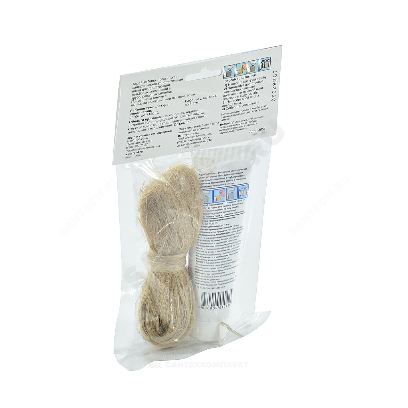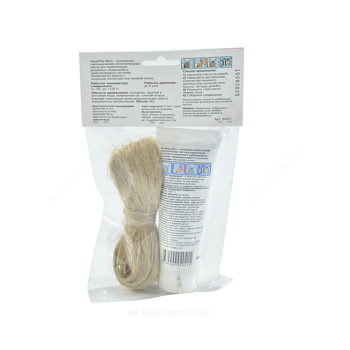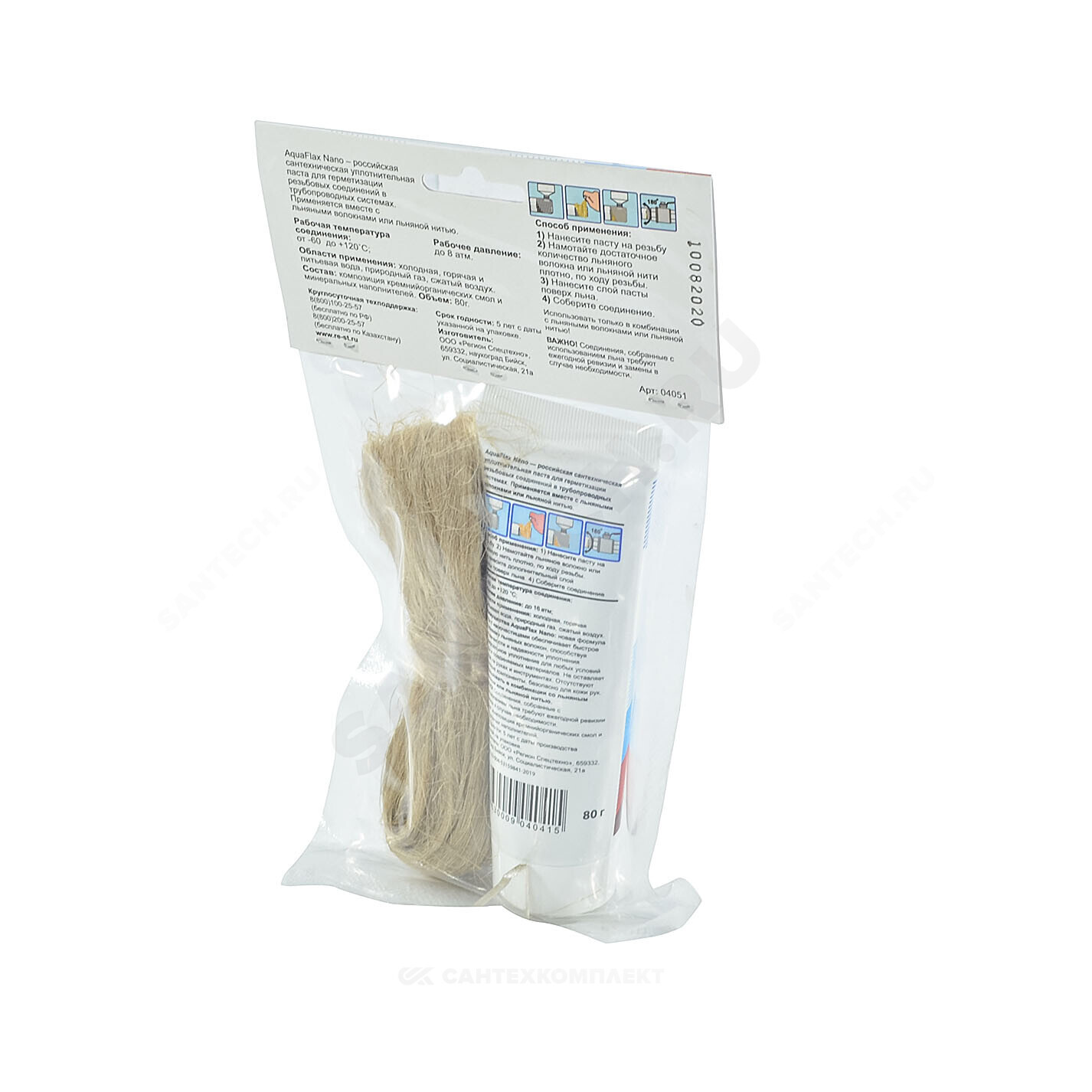 Набор паста и лён предназначены для герметизации резьбовых соединений в различных средах. Специально разработанная формула пасты AQUAFLAX NANO имеет наночастицы, которые позволяют быстро и эффективно проникать в структуру льна и надежно уплотнять резьбу. Ее формула не пачкает инструмент и руки мастера и легко стирается без использования воды. Лён в наборе отличается европейским качеством и чистотой волокон. ОБЛАСТИ ПРИМЕНЕНИЯ: -природный газ -холодная и горячая вода -питьевая вода -сжатый воздух -системы отопления