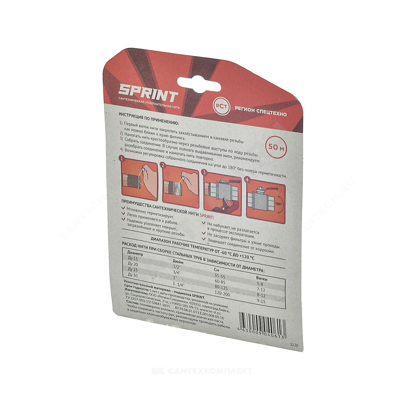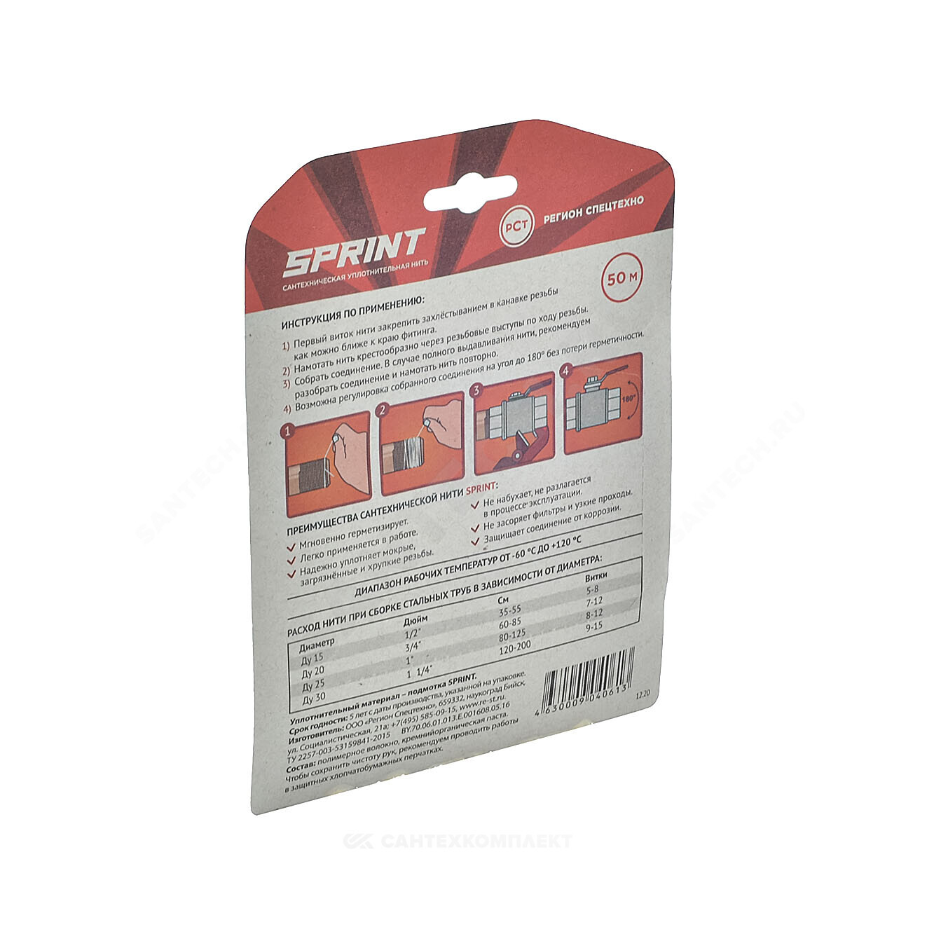 Нить SPRINT 50 м + 50 м сменная катушка - сантехническая уплотнительная нить для герметизации резьбовых соединений. Первая в мире нить со сменными катушками. Имеет плоское сечение, более 280 микронитей и улучшенную пропитку, разработанную Сантехмастер Групп. Подходит для срочного ремонта и монтажа. Применяется для резьб из любого материала. Благодаря сменным катушкам бокс с нитью можно использовать многократно, докупив расходники - сменные катушки, которые продаются отдельно. В наборе идет с запасной катушкой для замены.