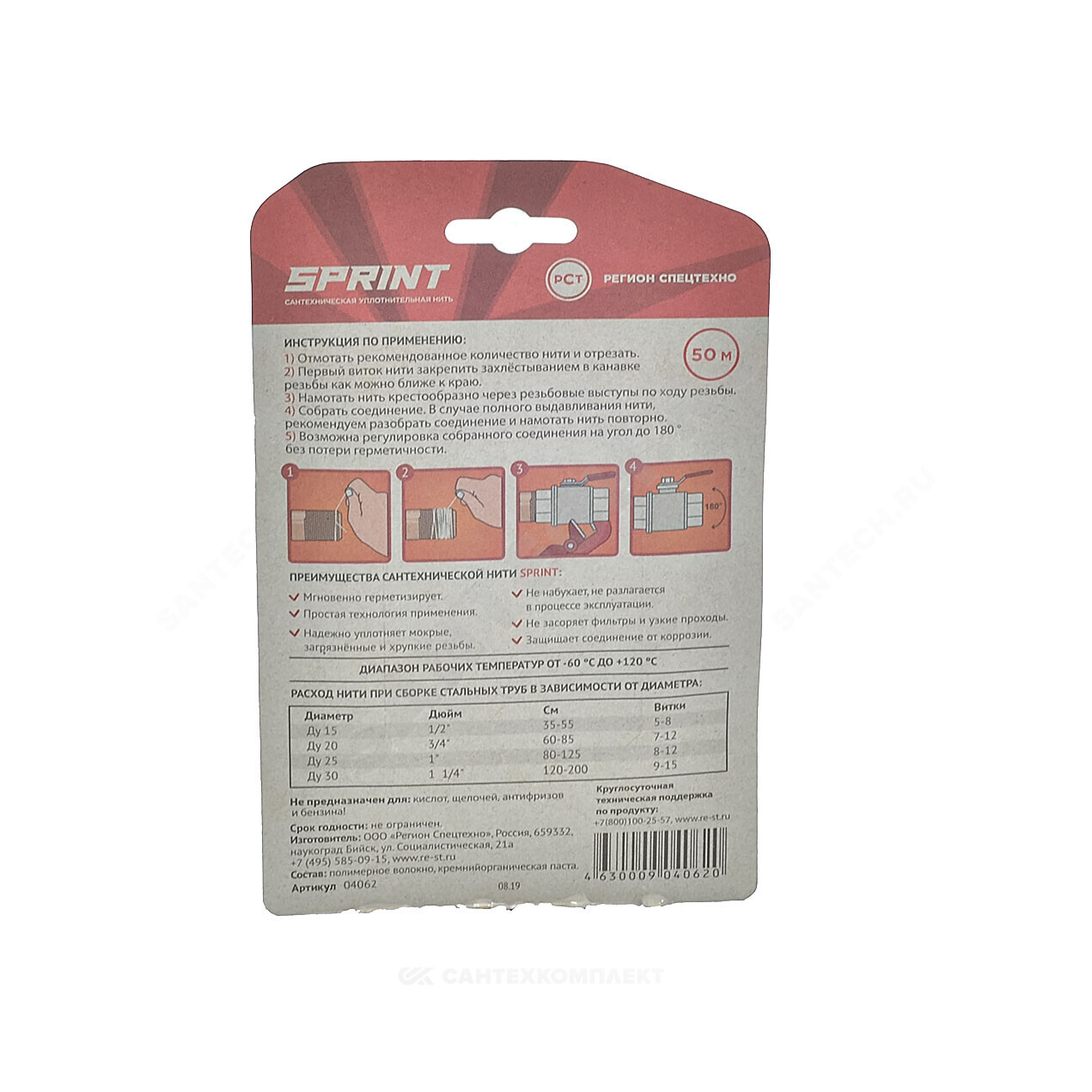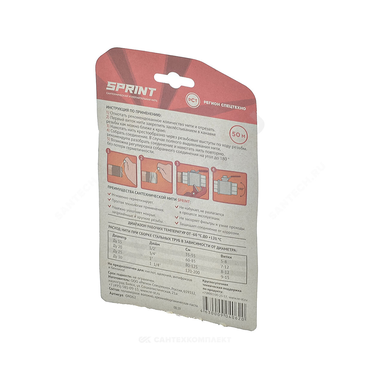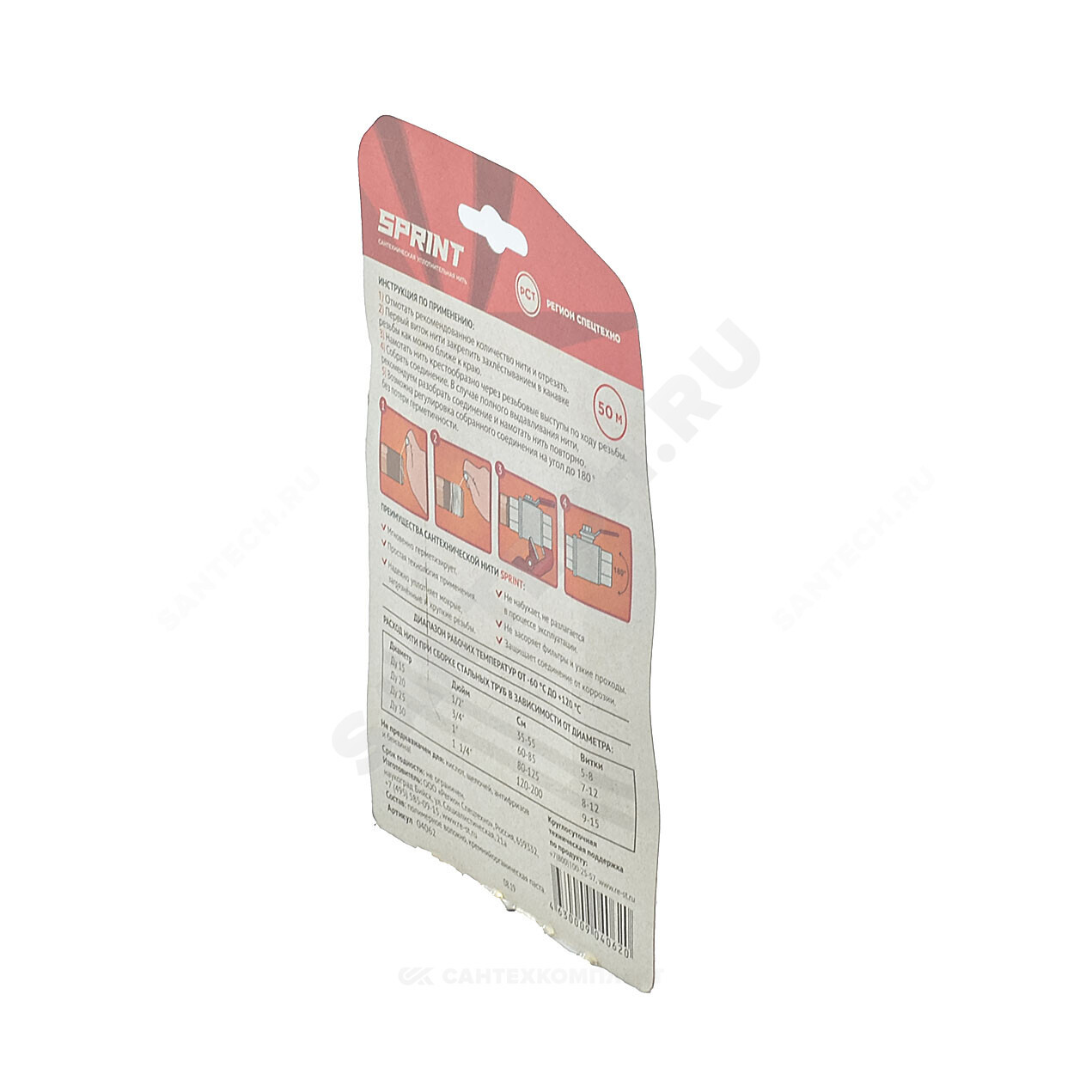 Нить SPRINT 50 м - сантехническая уплотнительная нить для герметизации резьбовых соединений. Первая в мире нить со сменными катушками. Имеет плоское сечение, более 280 микронитей и улучшенную пропитку, разработанную Сантехмастер Групп. Подходит для срочного ремонта и монтажа. Применяется для резьб из любого материала. Благодаря сменным катушкам бокс с нитью можно использовать многократно, докупив расходники - сменные катушки, которые продаются отдельно.