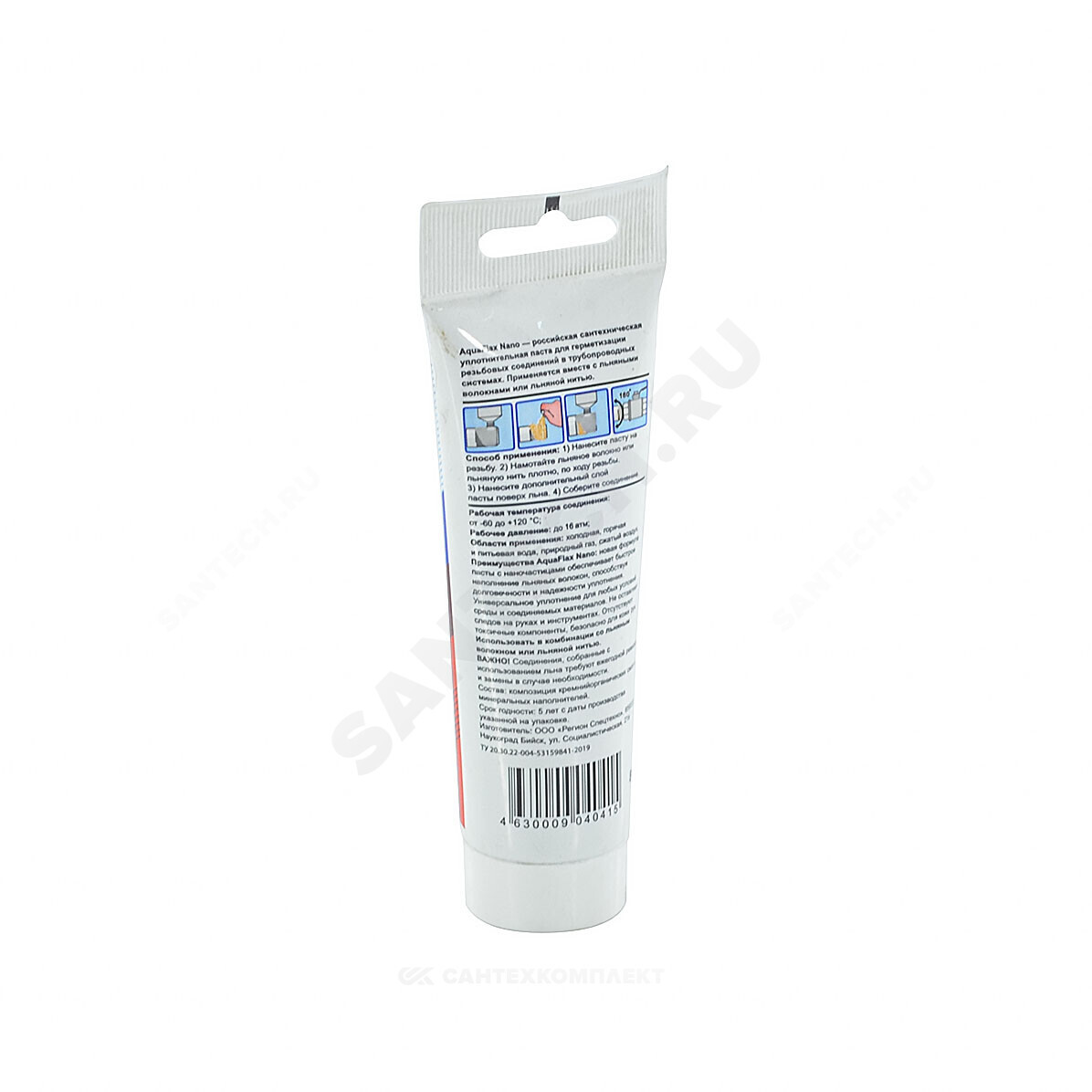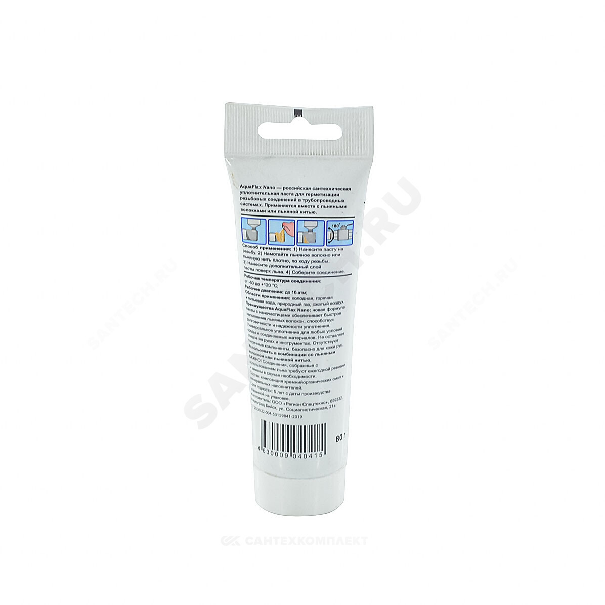 Паста предназначена для герметизации резьбовых соединений в различных средах. Применяется только вместе со льном! Специально разработанная формула пасты AQUAFLAX NANO имеет наночастицы, которые позволяют быстро и эффективно проникать в структуру льна и надежно уплотнять резьбу. Ее формула не пачкает инструмент и руки мастера и легко стирается без использования воды. ОБЛАСТИ ПРИМЕНЕНИЯ: -природный газ -холодная и горячая вода -питьевая вода -сжатый воздух -системы отопления