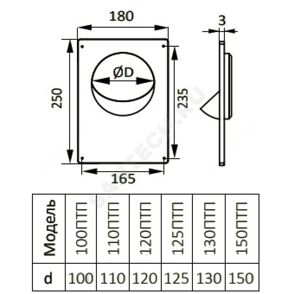 Диаметр или поперечное сечение воздуховода (вентилятора)