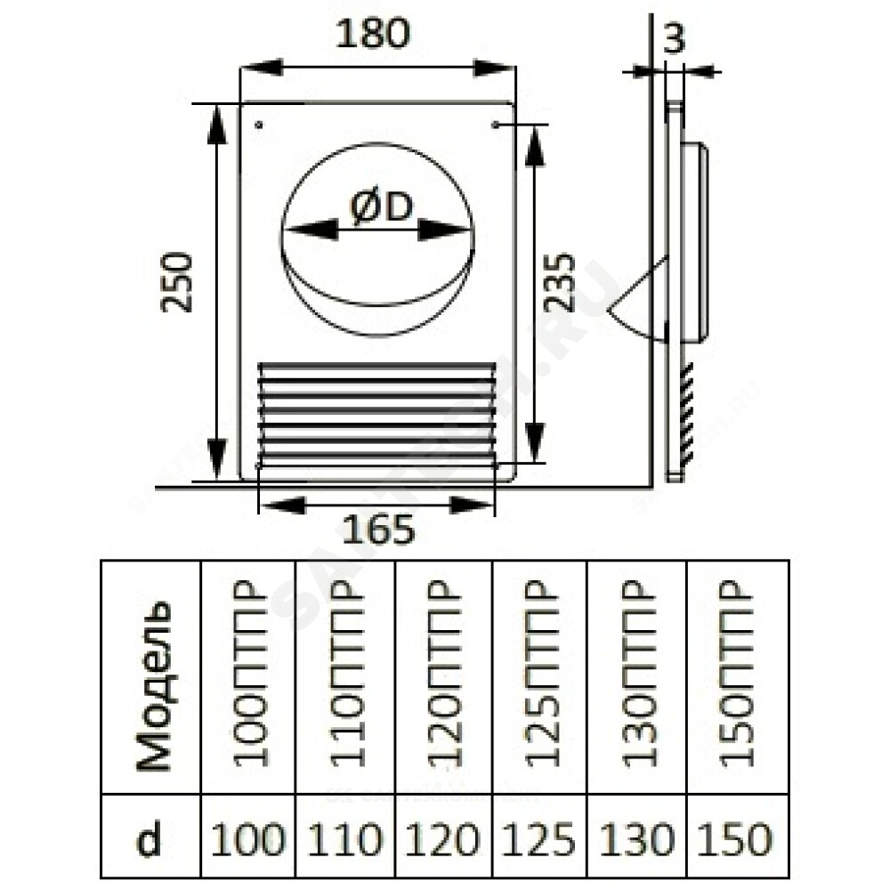 Диаметр или поперечное сечение воздуховода (вентилятора)