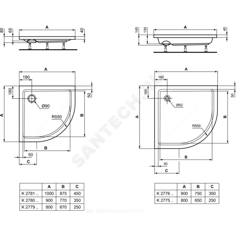 HOTLINE Акриловый сегментный душевой поддон.Слив и ножки заказываются дополнительно