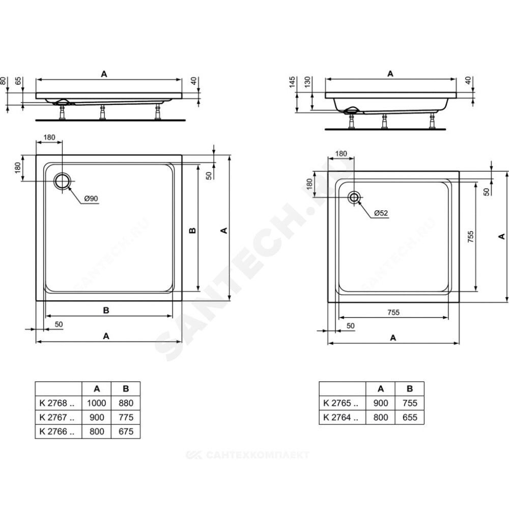HOTLINE Квадратный душевой поддон. Слив и ножки заказываются дополнительно
