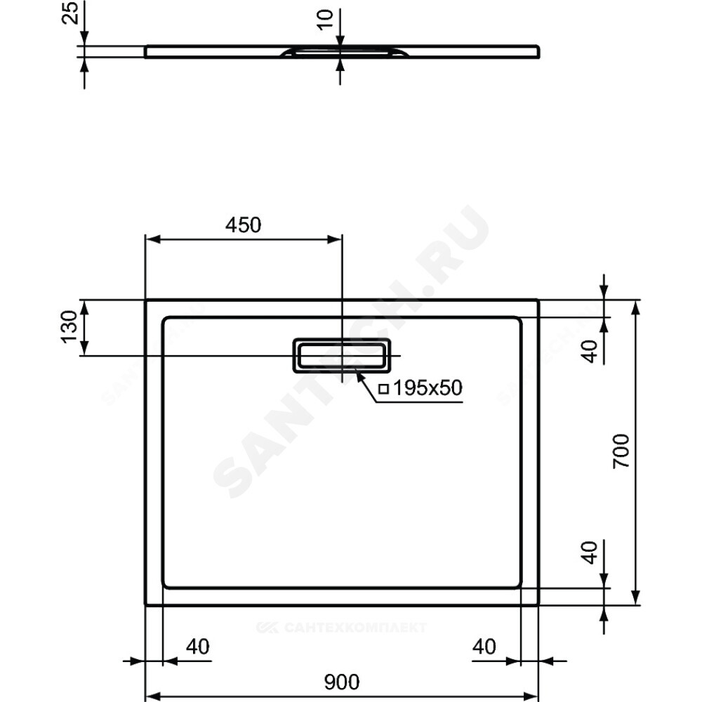 ULTRAFLAT NEW Ультратонкий акриловый прямоугольный душевой поддон.Сифон с декоративной прямоугольной хромированной крышкой (T4493AA) заказывается дополнительно