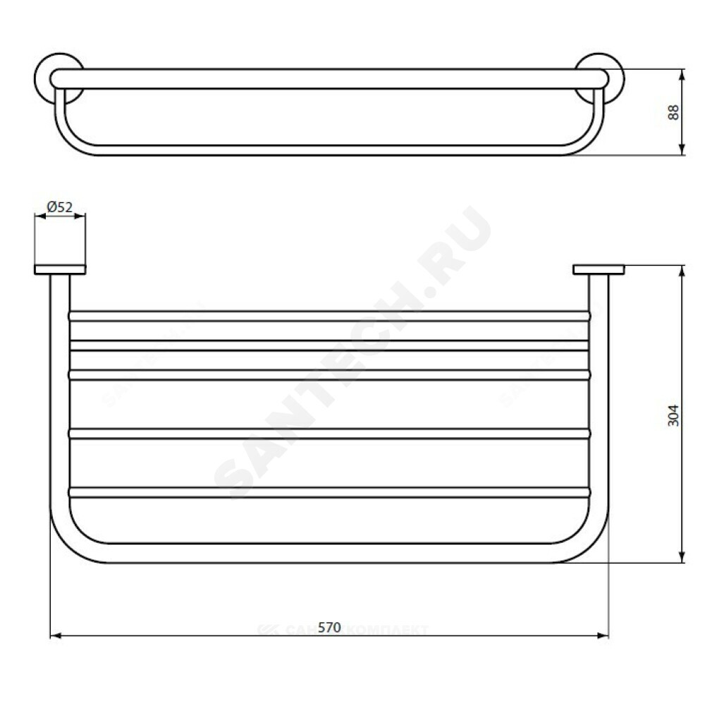 Полка для полотенец для ванны 60см, с крепежом.