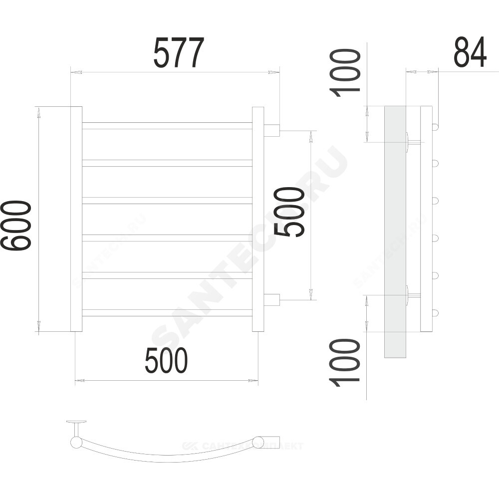полотенцесушитель "Лесенка-Эконом" с боковым подключением крепление телескопическое - 2 шт. заглушка - 1 шт. заглушка с воздухоотводчиком (кран Маевского) - 1 шт. паспорт упаковка