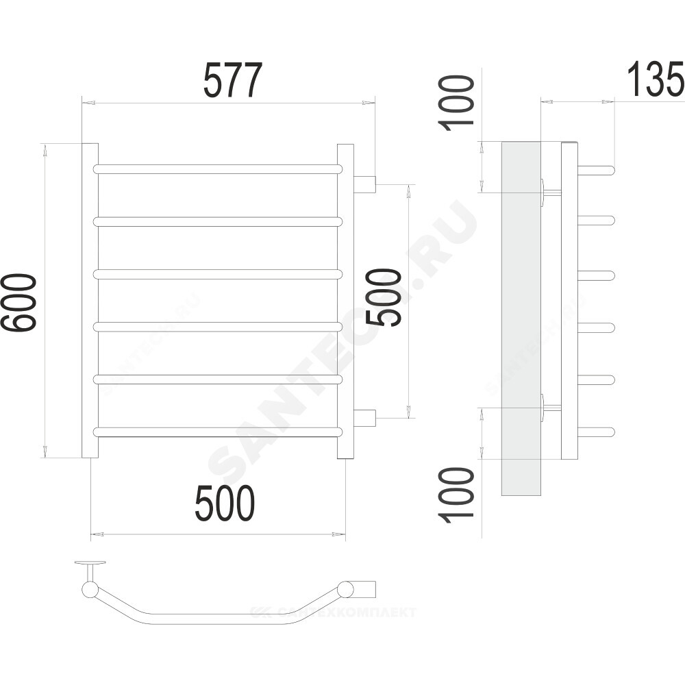 полотенцесушитель "Лесенка-Эконом" с боковым подключением крепление телескопическое - 2 шт. заглушка - 1 шт. заглушка с воздухоотводчиком (кран Маевского) - 1 шт. паспорт упаковка