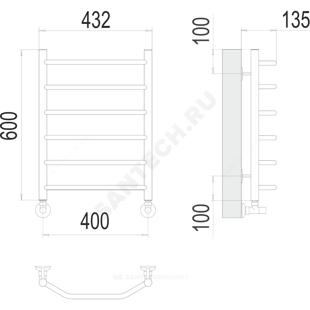 полотенцесушитель "Лесенка-Эконом" с нижним подключением крепление телескопическое - 4 шт. заглушка - 1 шт. заглушка с воздухоотводчиком (кран Маевского) - 1 шт. паспорт упаковка