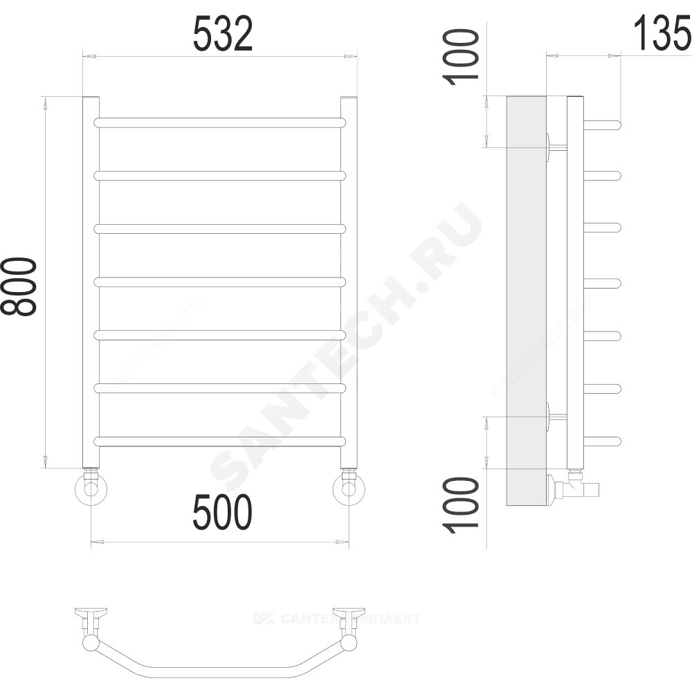 полотенцесушитель "Лесенка-Эконом" с нижним подключением крепление телескопическое - 4 шт. заглушка - 1 шт. заглушка с воздухоотводчиком (кран Маевского) - 1 шт. паспорт упаковка