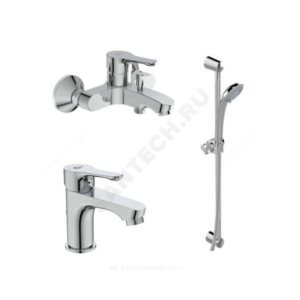 ALPHA Промо комплект, состоящий из: BC486AA ALPHA Смеситель для раковины с металлическим донным клапаном система монтажа EASY-FIX (облегченный монтаж) гибкая подводка G3/8" (шланги PEX) металлический донный клапан металлическая рукоятка с индикаторами горячей/холодной воды BC654AA ALPHA Настенный смеситель для ванны/душа, стандартный настенный монтаж, металлические накладки без душевого гарнитура металлическая рукоятка с индикаторами горячей/холодной воды автоматическое переключение B1489AA IDEALSTREAM Душевой гарнитур, состоящий из 3-функциональной душевой лейки 80 мм штанги 600 мм, d=21 мм, пластикового слайдера шланга для душа 1500 мм