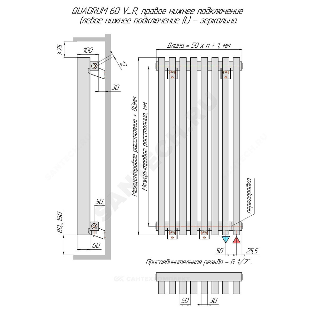 При установке радиатора рекомендуется выдерживать следующие расстояния: - от пола до радиатора – 80…160 мм - от нижней поверхности подоконных панелей до радиатора – не менее 75 мм.