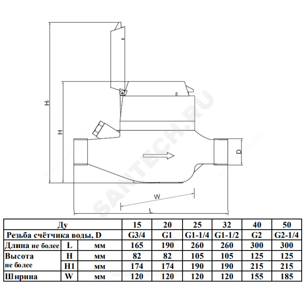 Резьба на корпусе счетчика (трубная цилиндрическая) в дюймах