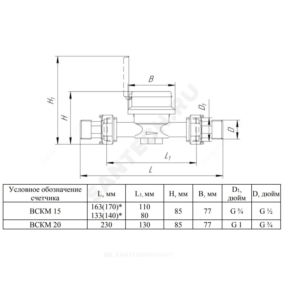 Резьба на корпусе счетчика (трубная цилиндрическая) в дюймах