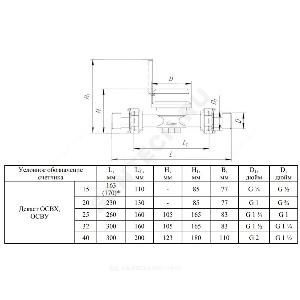 Резьба на корпусе счетчика (трубная цилиндрическая) в дюймах