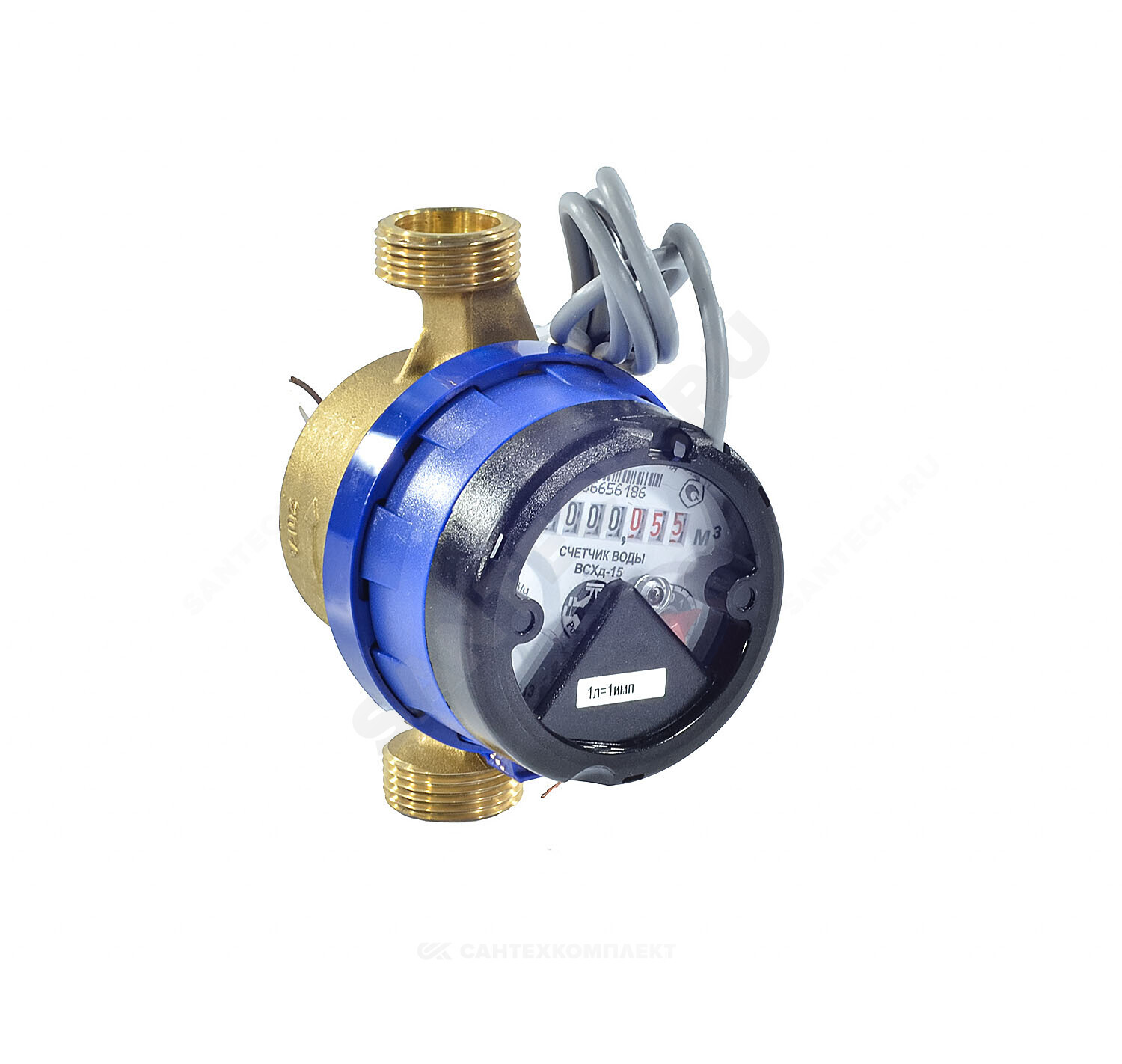 Одноструйный сухоходный крыльчатый счетчик с герконовым датчиком импульсов. Защищен от воздействия внешних магнитных полей.